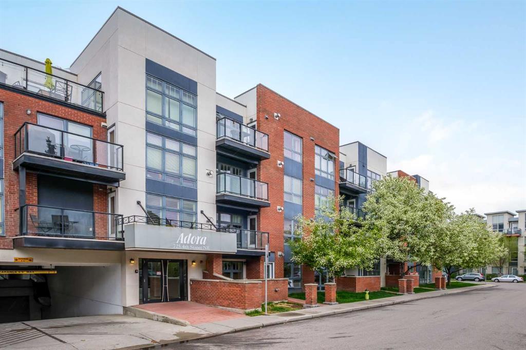 Welcome Home to Your Perfect Apartment in a desirable location close to Bridgeland. This exceptional 2-bedroom ground floor end-unit is located in the highly coveted Adora complex. Perfect for empty nesters and dog owners, this rare find boasts its own private entry, ensuring easy access and a sense of exclusivity. Step inside to discover a beautifully updated space featuring a stunning kitchen equipped with sleek quartz countertops, a chic white subway backsplash, and designer light fixtures. This kitchen is a chef's dream, complete with a high-end KitchenAid Induction stove and stainless-steel appliances, plus a newer full-size washer and dryer set for your convenience. Enjoy the abundant natural light streaming through the floor-to-ceiling windows in this east-facing unit, creating a serene environment perfect for plant lovers. The spacious living and dining areas offer ample room for entertaining, and the gas fireplace provides a cozy retreat during cold winter days. Step out to the spacious patio, ideal for summer barbecues and outdoor gatherings. The patio’s proximity to your private entry enhances convenience, making it a delightful extension of your living space. The primary retreat is a sanctuary designed for relaxation, featuring a generous walk-in closet that’s rarely found in condo apartments. The second bedroom offers versatility and can easily be transformed into a home office to suit your work-from-home needs. This condo comes with a storage locker conveniently located across from the unit, an underground parking stall, and an additional leased stall at an affordable rate that can be assumed. Communal bike storage is also available for the cycling enthusiast. Located just steps from the ridge overlooking downtown and the Stampede fireworks, this apartment offers the best of urban living. Enjoy a short walk to the vibrant Bridgeland neighborhood, with trendy bars, restaurants, and shops right at your doorstep. Don’t miss out on this gem! Book your private showing today and experience the perfect blend of modern comfort and prime location in the Adora complex.