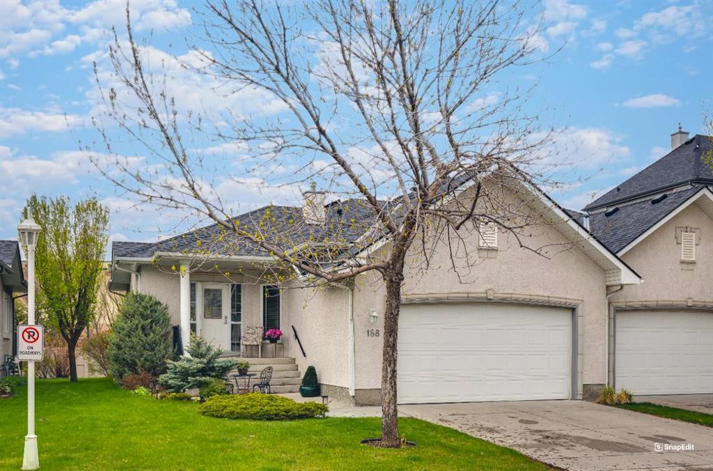 OPEN HOUSE SATURDAY MAY 25th 2:30-4:00pm. Enjoy SINGLE-LEVEL-LIVING at this beautifully-maintained BUNGALOW VILLA. “Stonehurst” is a tightly held and well managed complex on the West Hill…easy walking distance to transit (C-Train), shopping at West Market Square (Sunterra etc) and the Westside Recreation Centre. This unit has a SOUTHWEST REAR EXPOSURE and the living areas are flooded with sunlight. High ceilings, large windows and hardwood floors run throughout the principal rooms. Entry foyer with hard surface flooring and double closet. Open plan across the rear of the home. The spacious living room has SW corner windows and a gas fireplace. The bright kitchen has an island, and lots of storage and workspace and a pantry. Casual dining space next to the kitchen. Also a formal dining space to host your family and friends. The Primary suite has a spacious bedroom, walk-in closet and a 5-piece ensuite bathroom with 2 sinks and a separate water closet. A handy 2-piece powder room and a laundry-mudroom complete the main level. Access to the generous double attached garage is through the mud room. Outdoor living on the small upper deck or the ground-level patio. Fully developed down with 9’ ceilings, a sprawling recreation room with fireplace and wet bar (also great for crafts-hobbies), a large bedroom, full bathroom and ample storage. Enjoy low maintenance living with the freedom to “lock and go”. Pet-friendly complex.