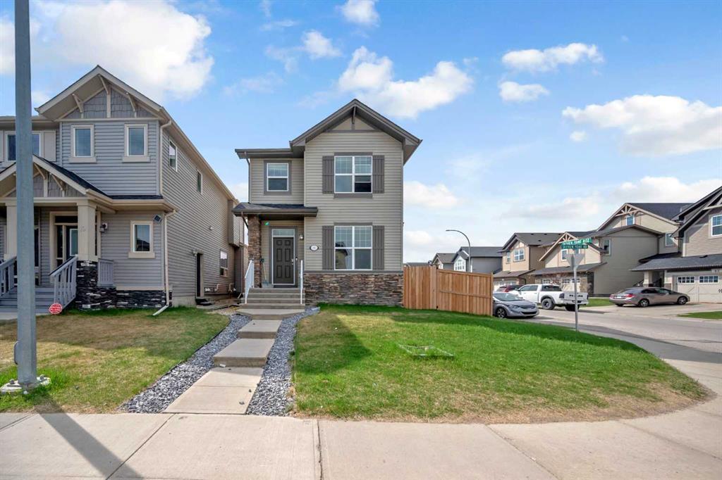 Stunning Corner Home in Desirable Skyview Ranch having 4 Beds/ 3.5 Baths/ Double Detached Garage/ Ill-legal basement suite with side Entry/ New paint and New vinyl flooring. Welcome to this beautiful two-storey residence, built in 2011 and boasting a perfect blend of style and functionality. The bright and airy living room features expansive windows and a cozy fireplace, creating a warm and inviting atmosphere. The sleek and modern kitchen is equipped with upgraded stainless steel appliances and a convenient center island, perfect for culinary enthusiasts and those who love to entertain. A separate dining room adjoins the kitchen, ideal for hosting family gatherings and dinner parties. The upper floor showcases three spacious bedrooms, including a luxurious master retreat with an attached bathroom and walk-in closet. Two additional well-appointed bedrooms and a full custom upgraded bathroom ( shower) complete the upper level. Enjoy the convenience of a double detached garage and two additional parking spaces in front and fully landscape yard with low maintenance. The basement ( Ill-legal suite ) boasts a bed, a den , a full washroom living area and a second kitchen with separate side entry perfect to have some income to help with the mortgage payments. This fantastic property offers easy access to Stoney Trail and is close to all major amenities including parks, shops, restaurants, grocery stores, walking paths, and a K-9 Catholic school. The community also has rapid bus service as well. This beautiful home shows great and is a must-see in the family-friendly community of Skyview Ranch!