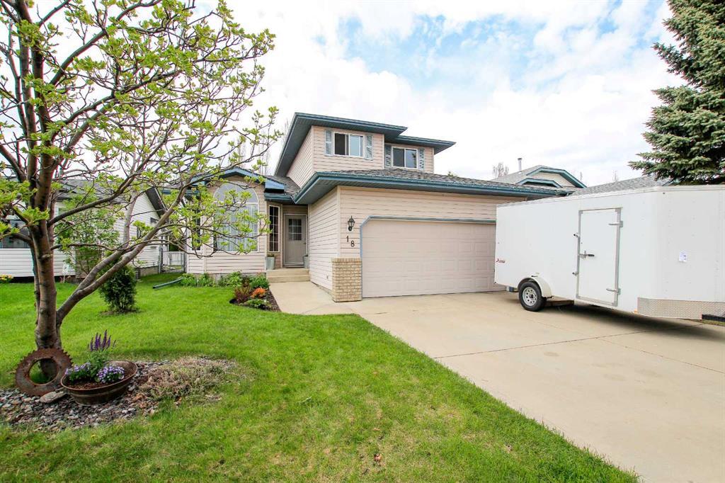 FULLY DEVELOPED 5 BDRM, 4 BATH 1.5 STOREY WITH OVER 1790 SQ FT ABOVE GRADE ~ HEATED DOUBLE GARAGE ~ LOADED WITH UPGRADES ~ Some of the many recent updates include; New shingles, flooring, painted walls and ceiling, new knobs, hinges, and door stops, vent covers, LED lighting, some new windows, updated bathrooms, kitchen backsplash, countertops, sink and faucet plus brand new Whirlpool appliances (water line to fridge) ~ Covered front entry welcomes you and leads to a sun filled foyer ~ The living room opens to the formal dining space and features floor to ceiling windows complemented by vaulted ceilings offering a feeling of spaciousness ~ The kitchen offers a functional layout with plenty of cabinet and counter space, full tile backsplash, corner pantry, window above the sink overlooking the backyard and opens to a breakfast room with garden door access to the two tiered partially covered deck with duradek finish and aluminum railings ~ A sunken family room is just off the kitchen and has a gas fireplace and more large windows overlooking the backyard ~ 2 piece main floor bath ~ Laundry hookups located just off the garage entrance ~ Open staircase leads to the upper level landing with an area for a reading nook ~ The spacious primary bedroom can easily accommodate a king bed plus multiple pieces of furniture, has dual closets and a 3 piece ensuite ~ 2 additional bedrooms on the upper level share a 4 piece bath ~ The fully finished basement features a family room with a wet bar, 2 bedrooms and a 4 piece bathroom ~ The garage is insulated and finished with freshly painted dry wall, is heated and has a man door to the side/back yard ~ The west facing backyard is landscaped with mature trees, has a garden shed and is fully fenced with back alley access ~ Located on a quiet street, steps to a large park and green space with easy access to schools and shopping ~ Pride of ownership is evident in this well cared for home!
