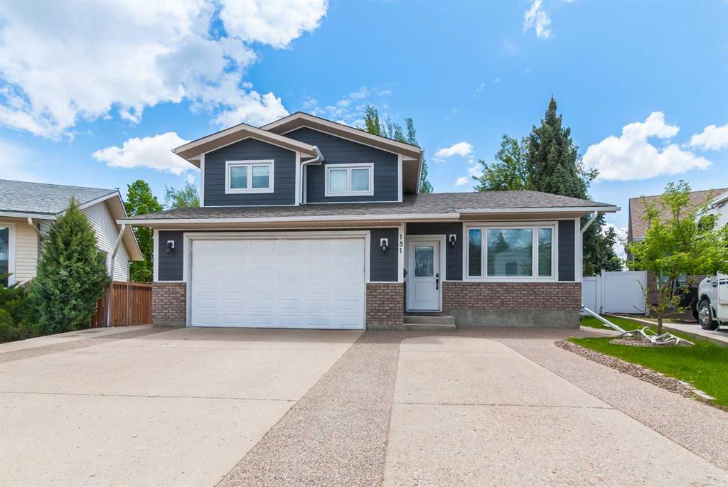 Welcome Home to 151 Palliser Way. Such beautiful street appeal for this 4 bedroom, 3.5 bath home in an exclusive court location with a park like backyard. Upon entry you are greeted with the main floor vaulted ceiling and the living room and dining area with hardwood floors. The kitchen has updated butcher block counters and is open to an eating area which leads down a couple steps to the large family room with a gas fireplace. Upstairs includes the primary bedroom with a spacious ensuite including a jetted tub and separate shower. 2 more bedrooms plus a very nice 4 piece bathroom finish off the upper level. The lower level has another family room/exercise area, the 4th bedroom, an office/den, a 3 piece bath and a laundry/storage room. A highlight of this home is the huge park like backyard which includes a covered deck, pergola sitting area, brick patio, a shed, kids play center and still room for a pool. Please note – there are 2 pictures that indicate what an 18’X36’ pool could look like should a buyer prefer to install down the road. An attached, heated double garage and a large triple driveway provide lots of parking. Noteworthy big ticket item upgrades over the last few years include a high efficiency furnace, air conditioning, hardie board siding, most new PVC windows and fence. This forever home located in a very quiet cul-de-sac in beautiful Parkview is only a few steps away from Palliser Park and is waiting for its new family. Book your private showing today.