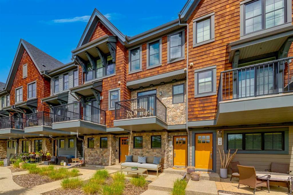 Welcome to the Enclave, a private complex in the beautiful community of Aspen Woods and Castle Keep. This stunning two-bedroom plus den townhome offers a full-sized driveway for additional parking and is ideally situated directly across from a natural reserve. Enjoy watching the loons swim in the nearby pond and take advantage of the walking trails close by. Inside, you'll find an open-concept kitchen featuring an eat-up bar, Caesarstone countertops, stainless steel appliances, and a beautiful backsplash. The kitchen opens to a Juliet balcony, perfect for enjoying fresh air while cooking and entertaining. The kitchen seamlessly flows into the dining room and spacious living room, both adorned with upgraded maple hardwood flooring. The living room is an excellent space for entertaining, featuring a stunning fireplace with a custom-made mantle. From here, access the deck, which offers incredible views of the natural pond and green space, as well as a BBQ gas line. Dine outside and enjoy the scenery. Upstairs, there are two master bedrooms, each with its own ensuite bathroom featuring upgraded Caesarstone countertops and cabinets. A stacked laundry room in the hallway adds convenience and functionality. This townhome also features a tandem garage with a finished, heated flex space in place of one of the bays, perfect for an office, den, or extra storage. Located just steps away from the amenities of Aspen Landing, Westside Recreation Centre, West LRT, coffee shops, restaurants, and schools, this townhome offers the perfect blend of luxury and convenience. Call today for a private viewing!