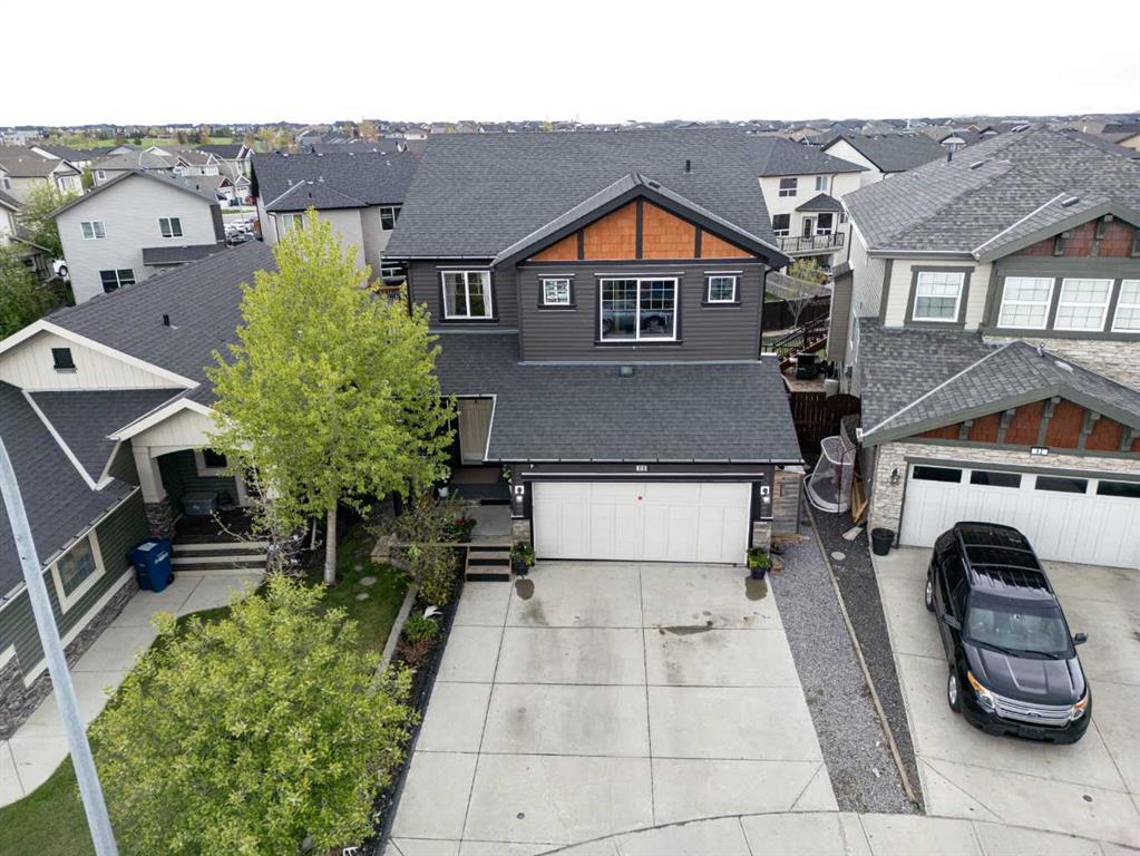This exceptionally well maintained 4 bedroom home with a heated garage and a finished walkout basement is gorgeously styled yet functional with a great layout and unbeatable location. In a family-friendly and extremely walkable neighbourhood, home to 2 schools, numerous parks, playgrounds, greenspaces, scenic pathways, fountains and even a timber amphitheatre. Then come home to a gorgeous retreat with lovely curb appeal and lush gardens in beautiful spring bloom. Inside is equally as impressive with a plethora of natural light, gleaming hardwood floors and chic designer details. The flex room is the first of many splendid extras, perfect to customize to your lifestyle as an office, sitting room or enclosed play space. The open and airy great room with a fanatic unobstructed plan and a casual elegance has wonderful connectivity. Show off your culinary prowess in the chef’s kitchen featuring quartz countertops, stainless steel appliances, a centre island with seating and a pantry for extra storage. Adjacently the dining room is encased in windows and leads to the upper deck for a seamless indoor/outdoor lifestyle with stairs to the lower yard, perfect for pet owners. The grand living room invites relaxation in front of the focal fireplace encased in dramatic full-height stone. The upper level is home to a large, vaulted bonus room for a quiet place to read and unwind or gather and play. 3 spacious and bright bedrooms are also on this level including the primary oasis boasting a swoon-worthy ensuite that includes dual vanities, a deep soaker tub, a separate shower and a large walk-in closet. The finished walkout basement will have everyone coming together over a good movie, friendly game or engaging conversation. A 4th bedroom, another full bathroom and tons of storage are also on this level. Walk out to the expansive, full-width lower deck and unwind in the tranquil yard, privately fenced and beautifully landscaped with lovely perennial gardens and a firepit area. This exquisite home is close to both Heloise Lorimer School and Airdrie Francophone School as well as multiple playgrounds and the ice skating rink. There are numerous preschools and daycares nearby and mere minutes to Cross Iron Mills Mall and Costco.