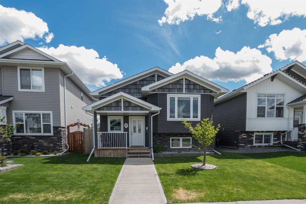 Nestled on a family-friendly crescent in sought-after Vanier East, this delightful home is just steps away from walking trails, parks, and playgrounds. Enjoy the convenience of nearby shopping, schools, and easy highway access. As you approach, a well-kept landscaped yard and a charming covered veranda welcome you. Inside, the spacious foyer greets you with a bright and inviting atmosphere. The home features stunning dark maple finishes, laminate flooring, modern decor, and neutral tones throughout. The living room is perfect for entertaining, offering ample space for family gatherings, and has large windows that flood the room with natural light. The kitchen boasts upgraded stainless steel appliances, a pantry, and an eating bar adjacent to the large dining area. The Primary bedroom features dual closets and a spacious 3-piece ensuite, while the second bedroom is accompanied by the main 4-piece bath. The fully finished basement offers in-floor heating, a spacious family room, two generous bedrooms, and an additional 3-piece bathroom. Enjoy the covered deck year-round, and take advantage of the lower deck with electrical and plumbing ready for your future hot tub. The large detached garage provides ample storage space, along with enclosed storage under the deck. This beautifully maintained home is ready for a new family to enjoy all the amenities of one of Red Deer's finest neighborhoods. Don’t miss out on this fantastic opportunity!