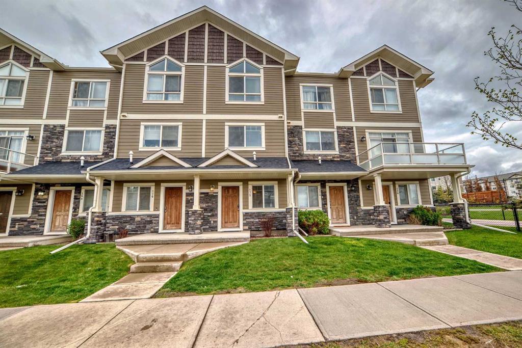 This gorgeous 3 storey townhome comes with 2 beds, 2.5 baths and a single attached garage. The main level consists of 9' ceilings, dark laminate flooring and large windows that bring in tons of natural sunlight. The kitchen offers S/S appliances, upgraded cabinets plus a breakfast bar that overlooks the separate dining area and large living room with access to a covered balcony. Upstairs you will find a South-facing master bedroom with vaulted ceilings, a 4pc ensuite, double closets plus a view of the park. Completing the upper level is a good sized second bedroom plus a 4pc bath and laundry area. The ground level offers a large flex/office area plus a 2pc powder room and direct access to the single attached garage. This lovely home is located across from a large community park and with-in walking distance to playgrounds, schools, shopping and City transit. Easy access to main roadways like Metis & Stoney Trail