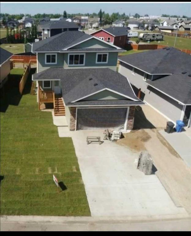 $13,800.00 in value of landscaping , deck and fencing included in the purchase price ! Welcome to this incredible 2-storey home in Wembley that is currently under construction and will be completed and ready for occupancy Late july or early August 2024 ! Boasting an attached garage and situated on a large lot, this property features a spacious backyard. The lot is wide enough that it can have an RV parking pad in the front. As you step inside, you'll be greeted by a lovely entryway complete with ample storage space. The main level offers a fantastic kitchen area featuring stunning cabinetry and European countertops, a generous dining area, and a comfortable family room and main floor laundry room . The upper level of this home has a generously sized master bedroom with a walk-in closet and an ensuite . two other good sized bedrooms and a 4 piece bathroom complete this upper level. The basement level is open and waiting for your creative touch to develop into additional living space. Located just a short 12-minute drive west of Grande Prairie, this home is situated in a fantastic area, offering numerous advantages. Come see for yourself what this remarkable property has to offer!