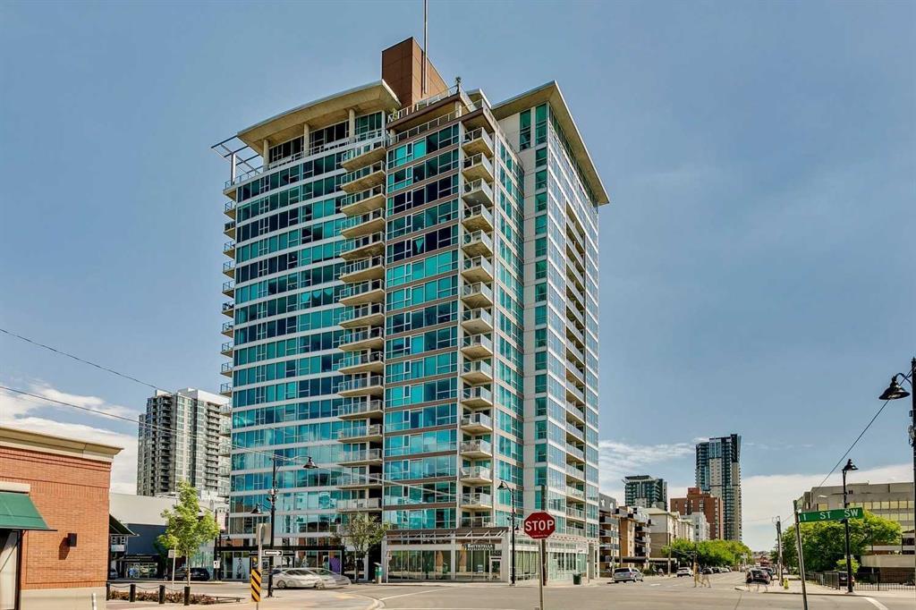 Step into this inviting condo, a perfect choice for first-time homebuyers or savvy investors. Boasting one bedroom and one bathroom across 780 square feet, this residence embodies the essence of vibrant city living. The minimalist aesthetic allows each area of this home to be a canvas for personalization and style. Upon entry, natural light floods the space, and offers a glimpse captivating views of downtown. The versatile den doubles as a home office or dining area, while the open kitchen seamlessly connects to the living room, creating an ideal space for entertaining. The living room is bright and airy, with large windows providing panoramic vistas of Calgary's skyline. Step onto the balcony to savour these breathtaking views while indulging in refreshing al fresco beverages. Retreat to the primary bedroom, where you can still relish in city vistas. The ensuite features a walk-in closet and spacious bathroom, accessible from both the bedroom and another entrance for guests' convenience. Further highlights encompass a spacious laundry room boasting ample storage, enhancing the practicality of this residence. Additionally, residents can relish in the community rooftop patio, perfect for gathering with loved ones on balmy summer afternoons. Situated in The Chocolate by Battistella on 15th Avenue SW in Downtown Calgary, this residence is perfect for urban enthusiasts who love exploring the heart of the city. With an array of amenities nearby, including restaurants for foodies and boutique stores for shoppers, this location truly offers the best of urban living. Experience the vibrancy and convenience of downtown living at its finest in this charming condo.