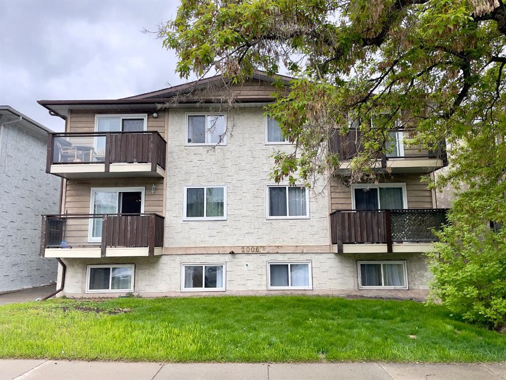Top Floor! Cozy Clean and bright 1 Bedroom apartment. Neatly decorated and soft colors enhance this renovated apartment, white Colonial Doors and trim. Hardwood Flooring throughout this open floor plan. Plenty of Hickory cabinets in the Kitchen, with Built-in over the Stove Microwave. Enjoy the extra storage space in the pantry. Very Convenient Dining nook that is open to the living room. Patio Door access to the Balcony off the living room. Use the European washer/dryer combination under the counter, or for the bigger loads a coin operated laundry is located on the lower floor. Bedroom also is complimented with hardwood floors with easy access to the full bathroom. Parking stall (302) is assigned and located at the back of the building, plus plenty of street angle parking is available. This bright cozy apartment is well located on the quiet west Sunalta (one way traffic). Close to Parks, Shopping, Entertainment venues, easy access to walking/cycling pathways. Short distance to transit. or easy driving roadways! A great Investment or a perfect place to call home!