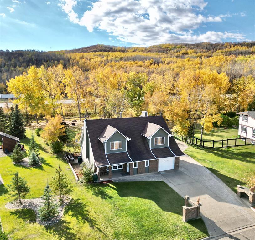 A beautiful park-like setting is the backdrop to greet you to this spectacular two-storey home nestled in the The Pines! Your own private paradise is here to enjoy and explore. Multiple outdoor living spaces including a covered deck allow you to sit and enjoy the calming water feature with cute bridge and waterfall. This property measures 0.43 of an acre which means that you have so much room to utilize that you will feel like you have an acreage while still enjoying the conveniences of town. The house itself is large. Not found in many homes are four large bedrooms on the upper level! No one will fight over a room here as they are all very generous in size, some with their own walk-in closets. There is a main bathroom and then the primary suite offers a walk-in closet and a private en-suite. The main level was built to host and entertain your closest friends and family. The gourmet kitchen with newly installed hardwood floors has ample cupboards and a huge island helps add the always appreciated counter space. Adjacent is a large dining room which provides plenty of space for even the largest of tables and right around the corner is an office nook and the large family room where everyone can gather round and enjoy the warmth and smell of the wood burning stove! The basement is fully finished and provides you a huge family room, den with bathroom and walk-in closet and plenty of storage. There is even a convenient walk-out from the basement taking you to the backyard. An attached garage is complemented by a spacious detached garage plus the extra long and wide driveway give you so many parking options. There is plenty of room here for a large RV, boat or just vehicle parking for the whole family. This home makes you appreciate large spaces inside and out! Put this house on your list if you are looking to make a move into space and roominess! Call your preferred Realtor today to schedule your private showing!