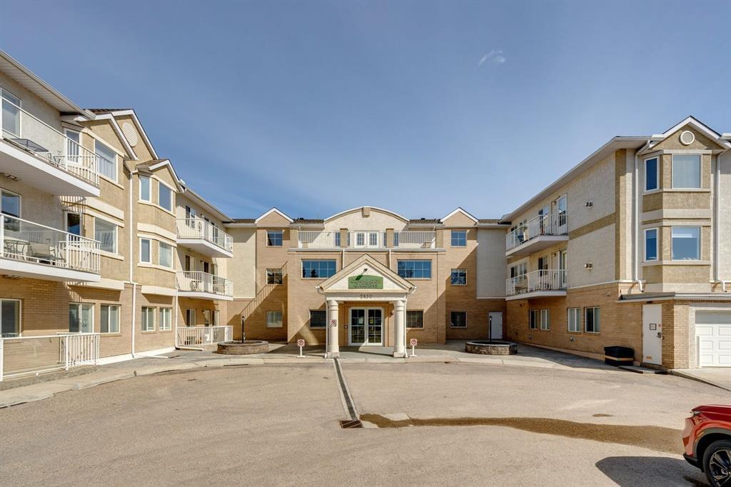 Welcome to Glenmeadow Garden, where low-maintenance adult living is at its best! This 55+, centrally located, 2 bed, 2 bath condo features just under 1,000 sqft of living space and a large balcony on the main floor. Upon walking in you will be welcomed with a spacious living area that includes a kitchen, living room and dining room. The kitchen comes with an island and lots of cabinet space. The combined living and dining rooms have plenty of space for you to entertain and enjoy family meals. The master bedroom easily fits a king bed and sports a walk-through closet with an en-suite. The unit also features A/C, in-floor heating, in-suite laundry / storage, and an underground parking stall. The building comes with secure entry, an elevator, a gym, a rec area with billiards and shuffleboard, a library and a beautiful courtyard that features a gazebo. With Signal Hill Centre a 5 minute drive away, you'll have easy access to shopping, restaurants and a movie theater.