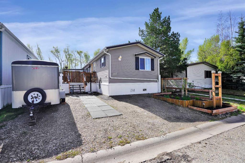 Experience modern living with this beautifully updated main-floor living manufactured home, which feels just like a contemporary condo but with the added benefit of your own meticulously landscaped yard. The kitchen has undergone a stunning transformation, featuring an abundance of new two-tone cabinets, a large floating island, a bright skylight, a walk-in pantry, a gas stove, and stainless steel appliances. The living room boasts a striking feature wall and new vinyl plank flooring adds to the home's comfort and style. The spacious primary bedroom comes with a luxurious 4-piece ensuite, complete with a jetted tub and a walk-in closet. There are also two additional bedrooms and a 3-piece bathroom with a new walk-in shower. For added convenience, this home includes main-floor laundry. The laundry room leads out to a 3-season sunroom- perfect for relaxing throughout the day or on cold spring/ summer nights. The front door and back door lead out to a massive deck for enjoying BBQ-ing and visiting with guests. There is so much room for flowers, water feature items, hanging baskets- whatever your green thumb desires! Additionally, a crank-out awning installed two years ago, allows you to easily transform a portion of the deck into a covered area. The exterior has been updated with new vinyl fencing and a roof that is only two years old. The yard includes two sheds; a 10x14 which is insulated and heated with 220 power, along with a 10x12 dry shed. This home perfectly blends modern updates with functional living spaces, making it an ideal choice for those seeking to downsize into comfort and style!