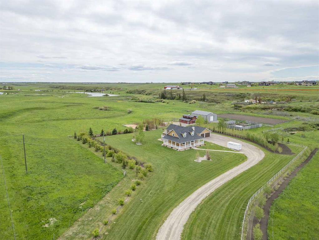 Welcome to 482048 Highway 783, minutes south of Okotoks offering a rare opportunity to own a piece of Alberta's stunning landscape with endless skies. Nestled in a desirable coulee, this stunning 2610 sf 1.5 Storey + basement residence was custom built in 2012 & expanded in 2018 with a renovation that was seamlessly engineered to work with the original structure. Sitting on 41 acres, Tongue Creek runs along the southern edge of the property providing water access for livestock. Sip your morning coffee as you enjoy your wrap around covered deck watching the birds sing & the deer graze while the kids are having fun catching frogs along the creek. The neighbours are far away so you can absorb these moments privately. Inside, relish all the natural light with the large wrap around windows, 2 storey ceilings in the foyer & great room plus the full height stone faced wood burning fireplace. The entertaining sized dining area has stone walls at both ends & natural wood beams & planked ceiling extending into the gourmet kitchen which boasts ceiling height shaker style white cabinets & loads of storage, professional stainless appliances, granite counters with eating bar! Behind find an expansive mudroom with triple barn sliding doors, private pantry & closet. Step out through your patio door to the covered, secluded rear deck providing endless views of your property including a stunning, fully fenced, in-ground garden and raised beds plus fire pit area. Enjoy the golden sands that can be used as a beach volleyball court or a 30 x 60 ice rink in winter! The main floor offers two bedrooms that share a full size bathroom, plus your guest powder room & laundry. Upstairs finds a great open bonus room, a massive bedroom with walk in closet, double access 5 piece spa-like bathroom & the relaxing primary bedroom. The lower level has in-floor heating & awaits your creative finish. Enjoy the central A/C & large storage under the deck for seasonal items. The massive 30 x 28 foot triple garage offers extra height doors & interior. The two storey 36 x 36 foot barn was constructed in 2014, is of post and frame construction with tongue & groove both inside & out, & offers several extra tall access doors, a convenient tack room, 2 stables & a mezzanine for hay storage. The 60 x 42 foot double height commercial quality workshop by Prairie Post & Frame has a gravel floor, great to store your farm equipment safe and out of the elements. The property is fenced & cross fenced into three grazing paddocks, a riding arena, Ritchie cattle water, & a 12 zone irrigation system for the yard lawn & trees, maintained by Naaid Irrigation Systems. Live your dream today & grow old in your forever home. Come, Breathe the fresh air & enjoy privacy with the entire family, seeing is truly believing. New Class 4 Vanguard wind & hail resistant roof shingles 2023, Upgraded electrical panel 2020: HVAC & AC 2018: septic pump 2024: deck 2018:, triple pane windows througout. Property has great internet w/Starlink.