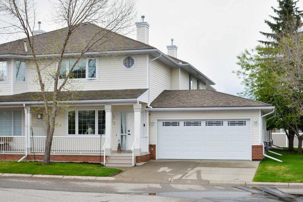 One of the best complexes in the city! 2027 sq ft of developed living space in this 3 bedroom, 3 bathroom unit. Double attached garage and driveway for 2 cars. Beautiful curb appeal with covered front veranda and large front bay window. Front entry way with door to the garage. Living room area with corner gas fireplace. thick rich carpeting, bright room open to the dining room area perfect for special dinners. Large bright kitchen with contemporary white cabinets, plenty of counter space and full array of newer stainless steel appliances including double oven. Kitchen has abundance of cabinets and designer glass door accents. Large bright west window provides lots of light. Kitchen also has family size nook area and newer laminate floor. Garden door to private garden terrace. The laundry room is located off the kitchen with large pantry area and there is a 2 pce bath located on main floor also and has new laminate flooring and fresh paint.. Upstairs you will find two primary bedrooms, both with 4 pce ensuite baths with new laminate flooring and walk in closets. The lower level offers a cozy family room with gas fireplace, track lighting and room for a corner office area. The third bedroom is located here along with a 4 pce bathroom. basement also has additional storage. This home has been extremely well maintained with new garage door, some new windows, recent newer furnace, fresh paint through out, new washing machine and much more. wonderful location in quiet street, near park, close to all amenities including schools, shopping, medical professionals, LRT and minutes to the mountains or downtown. Age restriction in this complex is 45 +