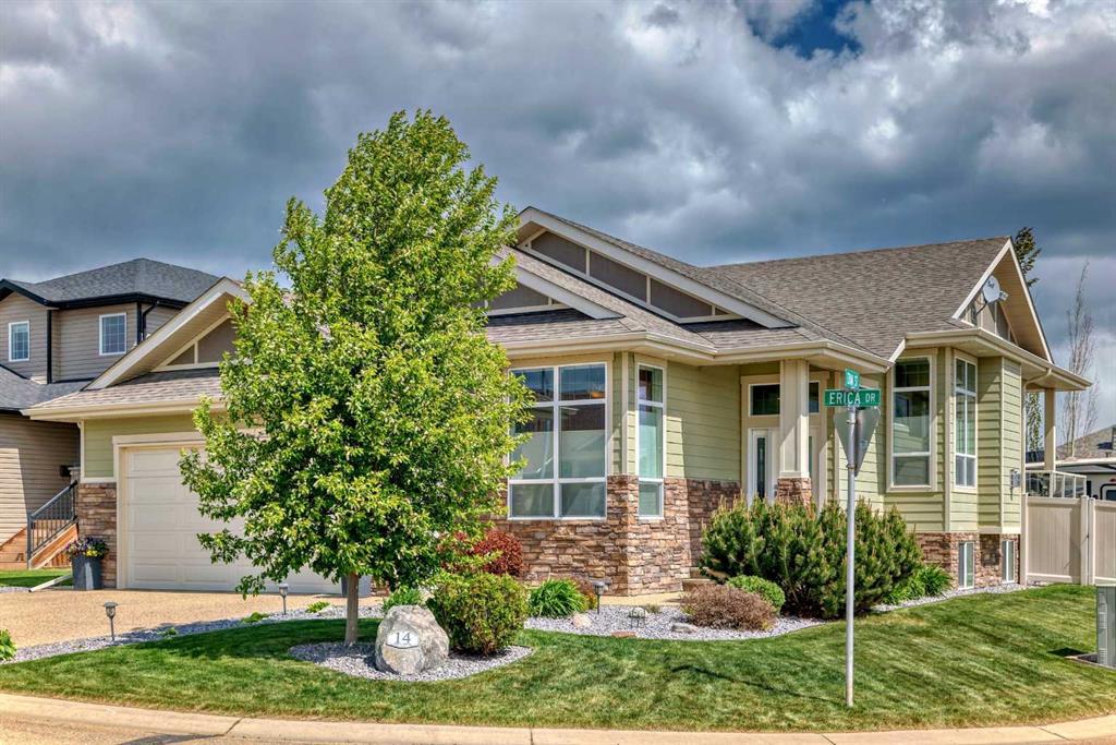 Discover luxury living in this stunning 4-bedroom plus den bungalow, meticulously designed with high-end finishes including central air conditioning. The open concept main floor boasts granite, tile, and hardwood flooring throughout. Step into the spacious living room featuring soaring 11' ceilings, picture windows that flood the space with natural light, and a striking gas fireplace with a stone surround. The chef's kitchen is a masterpiece with dark maple cabinets, granite countertops, a wall oven, a gas range with a convenient pot filler, and a large center island with an eating bar, perfect for entertaining. Continuing on the main floor you'll find, a den/office, two bedrooms including the master bedroom which includes a walk-in closet and a luxurious 4-piece ensuite with a fully tiled shower as well as main floor laundry. The lower level impresses with 9' ceilings and offers a large family room complete with a TV area ideal for family movie nights, a games/workout area, two additional bedrooms, a 4-piece bath, as well as an expansive storage room. Outside, enjoy the fantastic dura-deck covered patio with a gas hook-up, overlooking the beautifully landscaped and fenced yard. Energy efficiency is ensured with spray foam insulation, an air recovery system, and in-floor heating in both the basement and garage. Additional features include an attached 25'x21' heated garage with cabinets, an aggregate driveway, RV parking, all situated on a spacious lot. Don't miss out on the opportunity to call this exceptional property home. Schedule your viewing today before it's gone!