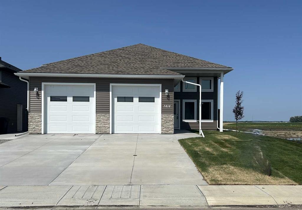 Welcome to this brand new bi-level home located in the desirable Vistas neighborhood. The upper level features an open-concept kitchen, dining, and living room area, perfect for modern living and entertaining. The kitchen is equipped with quartz countertops, a refrigerator, stove, dishwasher, and microwave. It also boasts a center island, a pantry with ample storage, and access to a back deck offering stunning mountain views and a BBQ gas line hookup. The master bedroom on this level includes a walk-in closet and a luxurious 5-piece ensuite with a large shower. An additional bedroom, a 4-piece bathroom, and a conveniently located laundry area complete the main floor. The lower level is designed for comfort with in-floor heating and large windows that fill the space with natural light. This level includes two spacious bedrooms a very large family room, a 4-piece bathroom with a tub, and a mechanical room. Throughout the home, you'll find large windows, beautiful fixtures, and high-end flooring that enhance its elegance and functionality. The large garage is another highlight, featuring overhead heating and 9x9 garage doors, providing ample space and convenience. The yard is completely landscaped and fenced with a 6 foot wood fence. This home offers plenty of space for families and is situated in a beautiful, family-friendly neighborhood. Don't miss the opportunity to make this stunning property your new home!