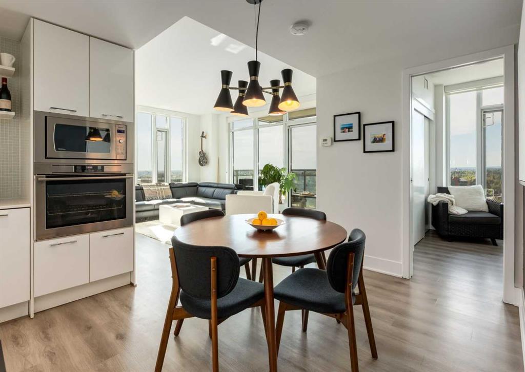 Perched on the 30th floor in the amenity-rich Mark on 10th building this two-bedroom residence is flooded with natural light with its wall-to-wall, floor-to-ceiling windows that offer breathtaking views to the South overlooking Mount Royal and the Rocky Mountains. Step inside to discover a thoughtfully designed interior with laminate floors and flat ceilings, exuding a sense of sophistication in every detail. The functional kitchen is equipped with quartz counters and premium appliances including gas stove-top, paneled fridge and built-in oven and microwave. The owner’s suite faces east with a large closet and a luxurious ensuite with glass and tiled shower. In addition, there is a large separate second bedroom that faces south, another full bathroom, and in-suite laundry. Unwind and entertain on the spacious balcony where you can soak in the panoramic vistas and enjoy the vibrant ambiance of the Beltline below. This unit comes with titled parking and an assigned secure storage locker on the second floor. Ensuring your peace of mind this building offers round-the-clock concierge/security services, along with three high-speed elevators for quick access to your residence. Owners also have access to book a Guest Suite. Elevating your urban lifestyle amenities include a fully equipped fitness facility, steam room, sauna, social lounge with billiards/foosball table/wet bar and a tranquil garden/green space. Owner’s can also escape and relax to the open air rooftop deck with a hot tub, barbeque and firepit all in the backdrop of the downtown city skyline. The Mark on 10th offers unparallelled convenience with dining, shopping, and nightlife mere steps away. Experience the luxury of urban sophistication and make this property your inner-city home today. Check out the video in media link or book your private showing today!