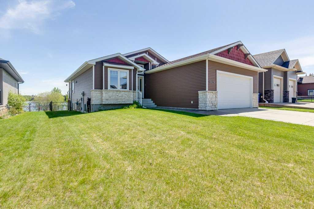 This property is a real gem! Enjoy the year round breathtaking view of pristine Dodd's Lake from the oversized back deck, complete with glass railings. This perfectly positioned scenic property features a 1,390 sq. ft. bungalow with 5 bedrooms and 3 baths. The large parking pad leads to an attached double garage and offers easy access to the walking trail right outside the back gate. There's plenty of space for the whole family and pets to enjoy the backyard, which is adjacent to a picturesque nature preserve home to a variety of songbirds, waterfowl, and even fish. Inside, the beautiful open floor plan and high vaulted ceilings enhance the living space. The kitchen boasts espresso oak cabinets and ceramic tile flooring, with a functional island and breakfast bar that make mornings and meal prep a breeze. Cozy up by the fireplace on chilly fall and winter nights. The large primary bedroom features an ensuite with a heated jet tub, separate shower, walk-in closet, and deck access. The main floor also includes a laundry room and two additional bedrooms. The downstairs area, with in-floor heating and large windows that allow plenty of natural light, includes a spacious family room and games area, two more bedrooms, and a full bathroom. The dream 23x24 double front attached garage is perfect for your vehicles and toys, featuring newer drywall, paint, and stunning epoxy flooring. Don't miss this opportunity to move into a wonderful home close to everything Innisfail has to offer!!