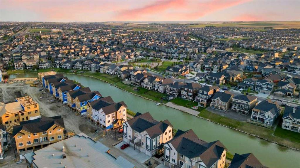 Welcome to the Canals, a highly desirable neighborhood centrally located in Airdrie. Presenting an exquisite townhome offering 1520 Sq. Ft. of Living Space, This awesome 3 story townhome with single attached garage is all you need, and is well maintained so you can just move in and call it yours. Situated on an end unit, this home is centrally located within Airdrie to lots of great shopping and schools, walking distance to parks. The upstairs main floor features gorgeous upgraded vinyl plank flooring, kitchen with quartz countertops, upgraded Kitchen aid STAINLESS STEEL appliances, waterfall kitchen island, pendant lighting and extra cabinets in kitchen. The living area is huge with intuitive floorplan for dining area as well as living room and large balcony. There is a charming 2 piece powder room on the main floor. On the third floor you will find a spacious primary suite, complete with WALK-IN CLOSET and ensuite bathroom complete with quartz counters. Across the hall you will also find 2 additional good size bedrooms and full bathroom. Beside the bathroom is a conveniently located laundry closet with Full Size Washer & Dryer. This home has everything you could ask for with a great location that is walking distance to coffee shops, grocery store and tons of trails along the canals.