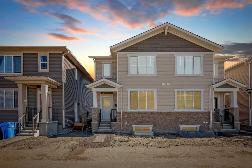 **Newly Constructed Cityscape Dream Home - A Stunning Blend of Comfort and Convenience** Introducing your next home, a brand-new 2024 duplex located in the heart of the vibrant Cityscape community in Calgary, never before lived in and boasting a myriad of modern features and prime locational advantages. This exceptional property offers four well-appointed bedrooms and three elegant bathrooms, ensuring ample space for family living or guest accommodation. Upon entering, you are greeted by a spacious, open-plan living and dining area, perfect for entertaining and family gatherings. The contemporary kitchen is a chef's delight, featuring quartz countertops, modern cabinetry that extends to the ceiling, and upgraded flooring throughout, all designed to enhance your living experience. The main floor includes a full bedroom and bathroom, offering privacy and convenience, while the upper floor houses three spacious bedrooms, including a master suite that promises relaxation and comfort. Additionally, the practical placement of a laundry room upstairs adds to the functionality of this home. Noteworthy is the separate entrance to the basement equipped with two windows, providing excellent potential for customization according to your needs. The backyard features a gravel parking pad, and the property's overall appeal is accentuated by aesthetic touches and thoughtful upgrades throughout. Situated a mere 10-minute drive from the Calgary Airport and within close proximity to playgrounds, parks, a forthcoming religious facility, and the Cornerstone Plaza, this home is perfectly positioned for both convenience and lifestyle. The local bus station and grocery amenities further complement your everyday living needs. This home is not just a place to live but a foundation for a lifestyle rich with convenience and modern elegance. Welcome to a new standard of living in Cityscape, where every detail is tailored for your utmost comfort and convenience.