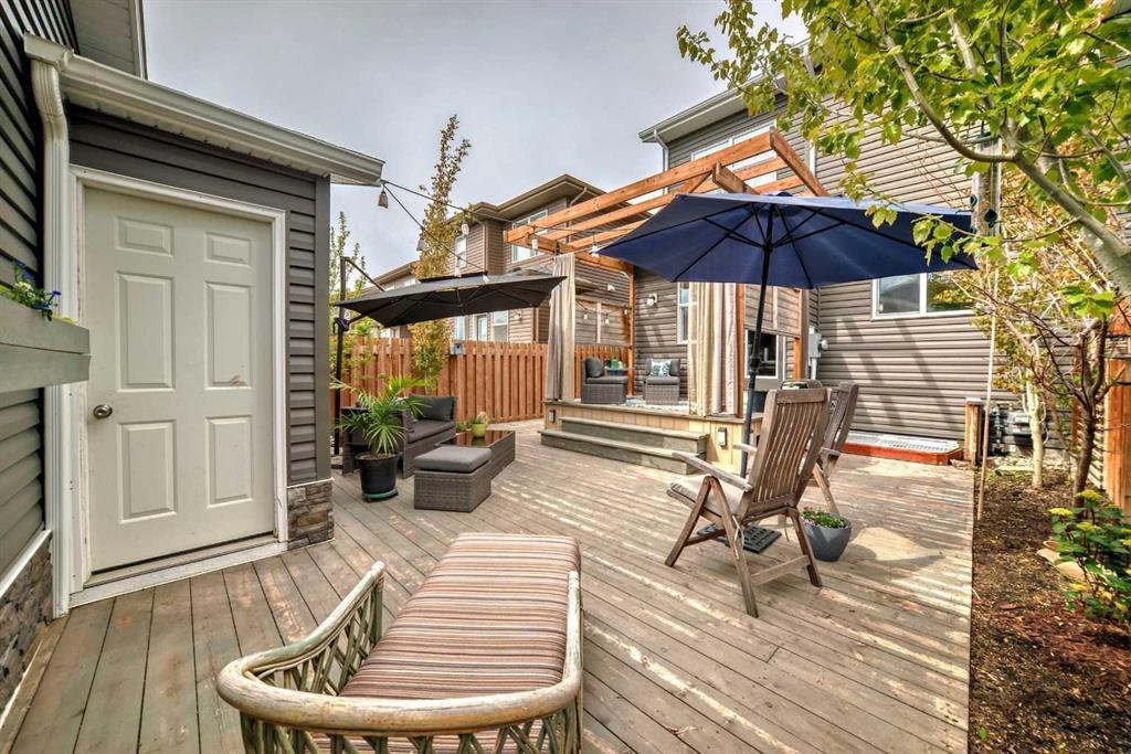 This stunning END UNIT townhome by JAYMAN HOMES is like new, boasts a flawless layout and NO CONDO FEES! With 3 bedrooms, 3 full bathrooms, and over 2100 square feet, luxury and comfort abound. This is likely the nicest townhome in all of Cornerstone AND YOU HAVEN'T SEEN THE BACK YARD YET! Inside, discover a spacious living area with loads of natural light, beautiful kitchen and ISLAND with QUARTZ COUNTERS and a HUGE PANTRY, . The upper levels has 2 bedrooms and super convenient TOP FLOOR LAUNDRY. The lavish primary bedroom has a huge 5 piece ensuite and walk-in closet. The newly developed basement was built with all the permits and is such a fantastic addition. Family room, 3rd bedroom, another 4 pce bath and small exercise area or kids play space! Outside... You need to see the backyard in person. IT IS FANTASTIC. Private, cozy, sun, shade & birds chirping. This is where you will want to be before work, after work and weekends. Enjoy the gorgeous low-maintenance landscaping. The OVERSIZED double garage has built ins and even has a lift for more storage! The location of this home is incredible. Within 5 blocks you have Grocery, Soccer fields, Schools, Playgrounds, Wetlands, Basketball courts, Banks, Hockey rink, Dollarama, Transit, Walking paths and just a short drive to Stoney Trail and the airport.