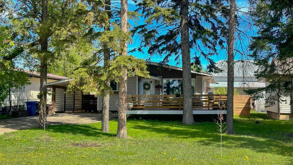 Only a 7 minute drive to Red Deer! You won't want to miss this renovated 1164 sq. ft. 5 bedroom, 2 1/2 bathroom bungalow with tandem carport and workshop, located on a large beautifully treed lot. This home has been ungraded up and down including kitchen, bathrooms, windows, flooring, paint...the list goes on. Upstairs you will enjoy the large living room with large picture window letting in ample light. The kitchen has been completely remodeled and embellished with stainless steel appliances. There are three bedrooms on the main floor, the primary bedroom has a two piece ensuite. Laminate flooring is throughout the home. Downstairs you will find a large family room, a 4 piece bathroom and two additional bedrooms. There is also a large storage room and one small storage for all your seasonal items. The yard is fabulous with a massive south facing deck off the kitchen/living room with gas line for barbeque and fireplace, a tandem car port, raised garden beds, wired with pad for a hot tub, a workshop/shed in the back yard with power (and heated with gas furnace but not warranted to be operational), a fully fenced rear yard. Shingles replace in approximately 2020. This home is a must see!