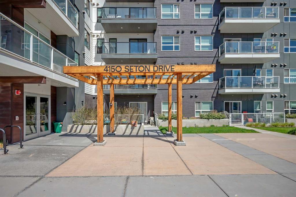 Open house on Saturday between 1:00 to 5:00 PM. Located in Seton, this Condo is a perfect opportunity for new home buyers or a small family looking to enter a growing community with ample amenities and quick access to all their needs. This property is a 2 beds 2 baths with storage and an underground heated parking offered with a ton of upgrades. The living room is great for the family to be entertained with access to the balcony with large windows and doors for lots of sunlight keeping it warm and cozy. The master bedroom is of substantial size with large windows with an en-suite bathroom, equipped with dual sinks, large counter space and cabinets and standing shower with tiles to ceiling. The second bedroom is also good sized to be used as a kids room or a home office. The kitchen includes a large island with upgraded quartz countertops for you and your family to enjoy meals. Kitchen is upgraded with stainless steel appliances with soft close drawers, upgraded cabinets all brought together with a backsplash making it inviting for anyone to cook in. The backsplashes are carried onto the bathrooms which include ceramic tiles all the way up to the ceiling. The balcony faces the south getting sun year round while also being the largest balcony in all the units facing the mountains. The balcony also has a natural gas connection for barbecuing to enjoy weekend parties with friends. The location of the building is perfectly set next to the YMCA, the public library and the Joane Cardinal High School. The property also has walking distance access to several grocery stores, commercial plazas and gas stations. The South Campus hospital is only 2 minutes away by drive for all health needs. Having quick access to Stoney Trail and Deerfoot Trail, the access to the city is at your doorstep. Call your favorite realtor for a booking viewing tour.