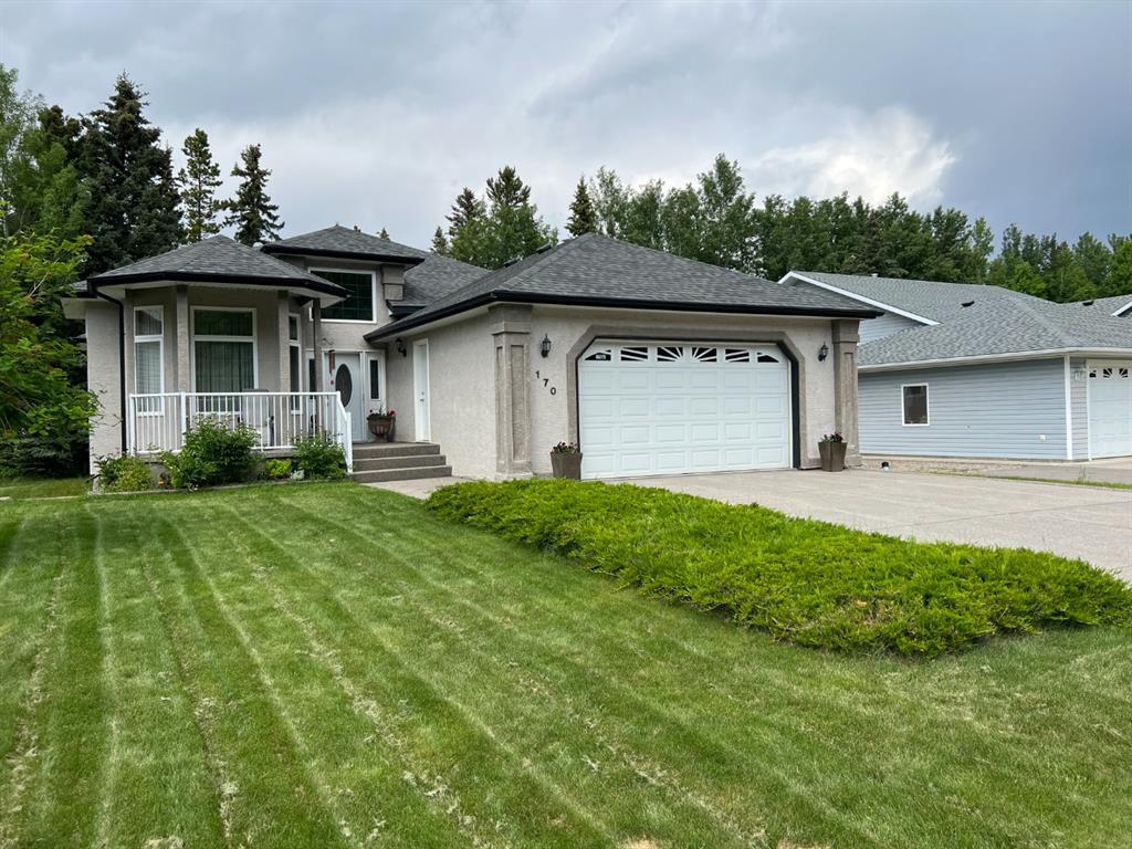 170 Hallam Drive is an executive bungalow, located on a desirable street, tucked away in Hinton's Valley District. This stunning home was built in 2004, with elegance and functionality in mind. You will find top end finishes and extensive custom oak touches through the entire home. The main floor offers a large open floor plan; with the focal point being the kitchen with high end appliances, large island and stone counter tops. The kitchen over looks a living room and dinning room, where you will find access to the back concrete deck. There is also a second formal dining room with built in china cabinet, secondary bedroom, 4pc bathroom and main floor laundry on this level. The main level is complete with the master bedroom featuring a double sided gas fireplace and spa like ensuite with soaker tub. The basement is very well appointed for entertaining with a wet bar and cozy fireplace in the oversized family room. This floor also offers 2 more bedrooms and a 3 pc bathroom perfect for older kids or guests. There is a large storage room in the basement complete with an in floor safe. The basement is also complete with in floor heat. The backyard is very private and backs onto green space. 170 Hallam Drive sits on a beautiful street with a large front yard and massive driveway. This home has plenty of space for parking, and as an added bonus has a private sani dump for your RV!