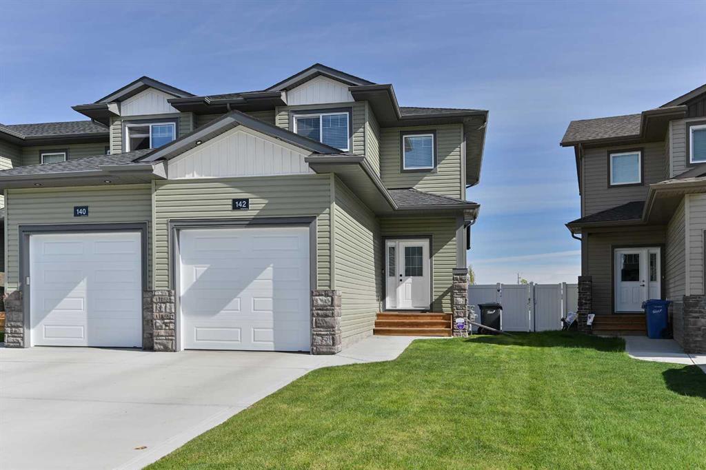Do not miss out on this absolutely immaculate home in a new neighborhood in Penhold! This 2021 built 2 story townhome is in pristine condition and is ready for new owners! The bright open foyer leads to a spacious living area that flows directly into the elegant modern kitchen featuring stylish cabinets, stainless appliances, pantry and ample counter space. The dining area leads directly to the spacious back deck overlooking the huge fully fenced and landscaped back yard that's perfect for kids and pets! The main floor also features a convenient 2 pc powder room. The upstairs is so cozy with plush carpeting and boasts a large master bedroom with walk in closet, two more good sized bedrooms, and a full4 pc bath. The basement is unfished and awaits your design ideas, but has ample space for gym equipment and storage. This outstanding home features upgrades such as a heated single attached garage, built in central vac system, and A/C for those hot summer days that are sure to arrive soon! The best part...NO CONDO FEES!! This pristine home is well maintained for worry free living!