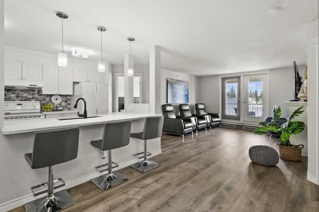 Step into modern elegance with this beautifully renovated condo, perfectly situated in the heart of South Calgary. This top-floor corner unit offers a sleek and stylish living experience just steps from the vibrant Marda Loop Shopping District on 33rd Ave. Enjoy unparalleled convenience with trendy cafes and dining options, boutique shops, lively pubs and breweries, and all the essential services within easy reach, making this the ideal spot for a dynamic urban lifestyle. This Top Floor 2-bedroom, 2-bathroom condo boasts newer renovations that highlight a contemporary modern aesthetic with clean white lines and high-end finishes. The open-concept living area is a masterpiece of modern design, featuring newer paint, Lighting, LVP Flooring, a cozy built in gas fireplace and pristine stone countertops in the kitchen that create a bright and airy ambiance. Large windows provide sweeping views to the north, showcasing the stunning Calgary skyline and the rolling hills of South Calgary, Marda Loop, and Bank view, adding a touch of serenity to your urban sanctuary. The primary bedroom is a spacious haven, complete with a walk-in closet and a luxurious 4-piece ensuite bathroom, complete with new vanity, lighting and paint. This is the perfect place for unwinding after a busy day. Enjoy views of downtown from your bed - Watch the night lights twinkle and dance along the skyline highlighting the Calgary Tower and Telus Sky Building. The second bedroom is versatile and functional, ideal as a home office or guest room, and comes equipped with a large closet and bright sunny windows. This well-managed building enhances your living experience with recent updates including newly painted hallways and updated flooring, maintaining a fresh and inviting environment throughout. Additional amenities such as underground parking for residents AND guests, this unit also includes TWO separate storage lockers and a titled parking spot! Don't forget about the buildings party room, perfect for entertaining large groups. All of which adds to the convenience and appeal of this exceptional property! Experience the best of South Calgary living, where modern design meets urban convenience. This condo offers the perfect blend of style, comfort, and location, making it an ideal choice for anyone looking to enjoy a vibrant inner-city lifestyle. Don’t miss out on this exceptional opportunity. Call today to schedule a viewing and take the first step towards your new condo in the heart of Marda Loop!