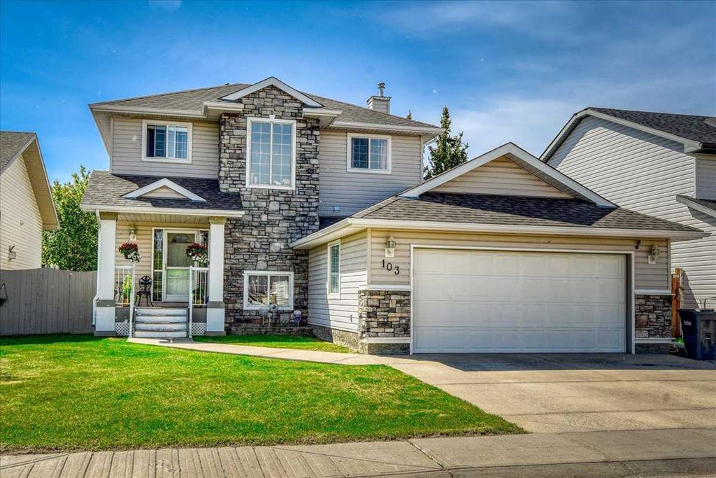 Lovely two-story home nestled in the established neighborhood of Aspen Creek in Strathmore. Enjoy the convenience of being close to schools, shopping, walking paths and downtown. Spacious living with 1599 sqft, this home features 4 bedrooms, 3.5 bathrooms, a fully finished basement, double attached heated garage, central air and central vac. The recently painted main floor boasts an open floor plan with a beautiful kitchen, dining room, living room with gas fireplace, along with a half bathroom and laundry. Upstairs you’ll find a spacious master bedroom and ensuite with jetted tub, two additional bedrooms and a full bathroom. Downstairs, discover a cozy rec room, guest bedroom and another full bathroom, perfect for a man cave of extra living space. Outside is a fully fenced yard with landscaping, mature trees and gas BBQ hookups. The backyard has a large deck with aluminum railing and a newly installed dog run with synthetic turf. This well-maintained home is ready for new owners to move in and enjoy.