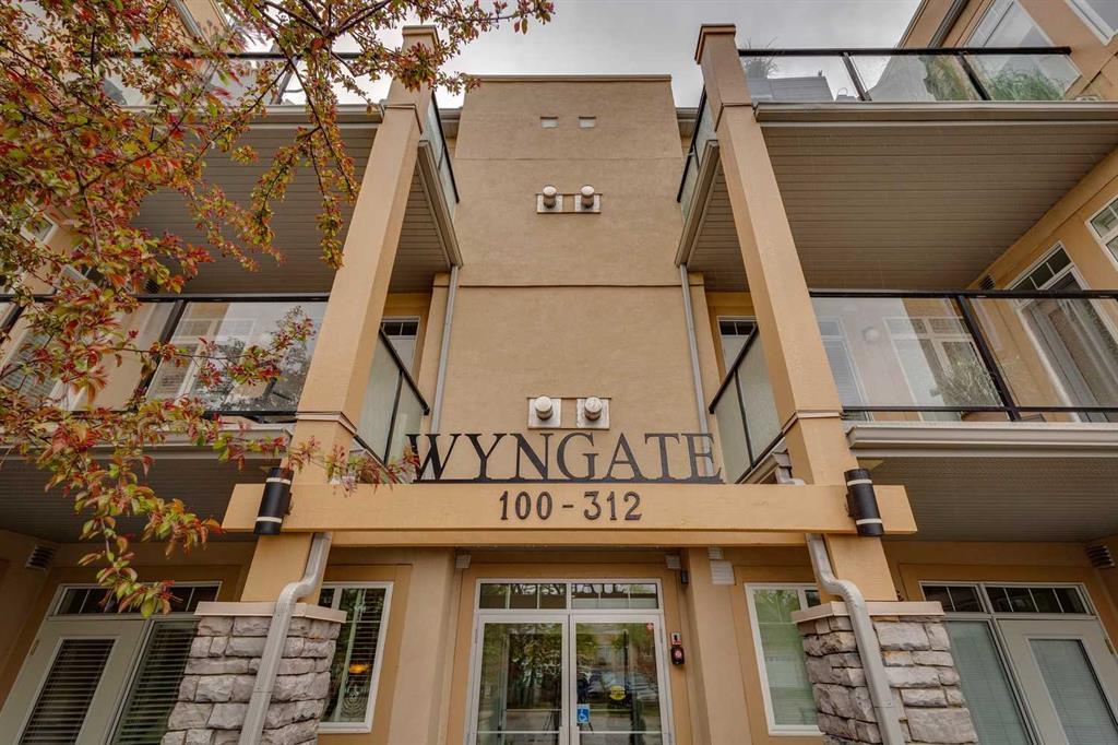 Spectacular 1300 sq. ft., two bedrooms, two full baths, and a den luxury apartment in Wyngate of Pump Hill. This is probably the nicest unit in this upscale and much sought-after building. Upgraded throughout with quality finishing, this beautiful luxury condo will be easy to call home. Truly estate-level design and finish with rich Walnut hardwood laminate floors throughout. House-size kitchen features quality cabinets, valance lighting, granite countertops, a large island, and stainless steel appliances. Enjoy the spacious great room with a cozy gas fireplace. Estate casing and baseboard, upgraded lighting, French doors, oversized windows with upper transoms, custom new blinds, elegant draperies, upgraded baths with granite vanities and new toilets, 9' ceilings, knockdown stipple. A/C, two titled parking stalls, storage, and more. Tax assessment size 1405 sq. ft. of pure luxury. This is a +35 adult building that is very well run and close to major transportation routes and shopping and is moments away from south Glenmore Park.