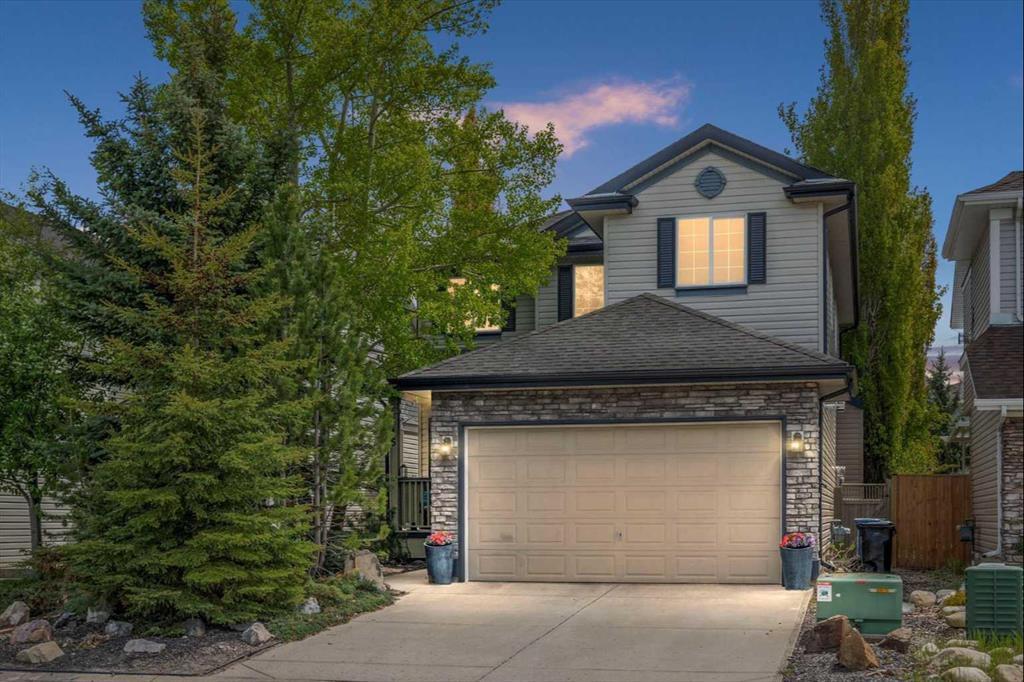 This bright, open concept, 3 bed/2.5 bath home in West Springs is the perfect place to start or grow your family! Enter from the covered front porch to the open foyer area, with formal dining room to the left. Natural maple hardwood floors flow seamlessly throughout the main floor to the open kitchen, nook and living area. Large windows overlooking the deck and south facing backyard ensure that the main living areas are always bright and inviting. Kitchen features pantry, stainless steel appliances, "homework" area, and eat up island. Main floor also includes a powder room and mud/laundry room leading to the double garage. Easy access to the deck from the kitchen nook makes barbecuing a breeze, while children can play in the fully fenced, treed backyard. Two sheds (included) offer extra storage for toys and garden tools. Upstairs find a huge bonus room (with built in shelving and roughed in for a gas fireplace) with a vast view of the open field across the street. The primary bedroom features a private south facing deck, a 4-piece ensuite with jetted tub and steam shower, and a walk-in closet. Two other bedrooms and a 4-piece bath complete the upstairs. The unfinished lower level has a roughed in bathroom, egress windows and high ceilings and is ready for your personal design. The huge athletic field and play area across the road gives the home an expansive feeling, plus the children have lots of space to run! Located in the desirable community of West Springs with parks, pathways, Winsport and close to excellent schools, shopping, and restaurants, plus quick access to the new ring road. Make this your new home!
