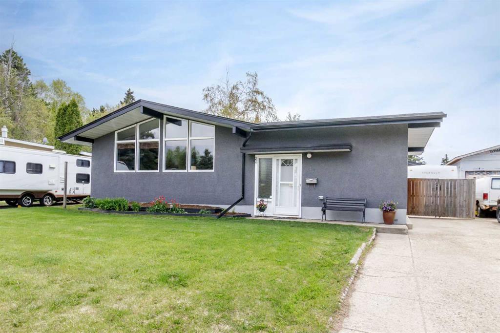 Welcome to this stunning home in the highly sought-after area of Sunnybrook, boasting a 10/10 rating for location! Situated on a close and facing a green space, this home is just minutes away from the picturesque walking and biking trails that weave through Red Deer. Step inside this spacious and beautifully renovated home that seamlessly blends modern updates with classic vintage charm. The living room is a cozy retreat with vaulted ceilings adorned with beams and scraped engineered hardwood flooring, creating a warm and inviting atmosphere. The primary bedroom features a convenient 2-piece ensuite, alongside two additional bedrooms and a fully tiled, renovated 4-piece bathroom on the main level. Downstairs, you'll discover a versatile office or hobby space, a generous family room area, and ample storage for all your needs. Outside, the backyard is a true oasis with mature trees providing shade and tranquility. A highlight is the 24x28 garage (10ft ceiling height) with convenient pull-through access, offering ample space for parking and RV storage, all within your own gated yard.