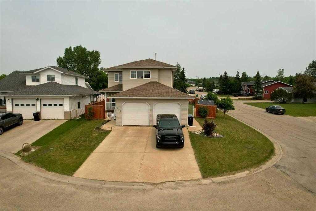 Welcome to this spacious 5-bedroom, 4-bathroom home in a quiet, family-friendly neighborhood. The large main entrance greets you and from there you can enter the great room or take a left turn into a lovely, bright office or den - perfect for working from home. The grand open living area features a stunning kitchen equipped with black stainless-steel appliances, a huge eating bar, and a bright dining area. This living space boasts a gas fireplace, soaring ceilings, and plentiful windows to the east and north, flooding the room with natural light. Here you can entertain or enjoy family meals indoors, or on the large deck off the dining room. The yard is securely and privately fenced for your peaceful enjoyment. Entering from the large garage, with its unique custom-built secure area you can stop by and throw in some laundry or access the powder room adding convenience to your daily routine. Upstairs, the master bedroom is a true retreat. It includes built-in shelving and a large ensuite with a jetted tub, separate shower, and vanity area. Stop and look out the windows when you are in this room. The views to the SW are stunning, overlooking the vast countryside and mountains in the distance. Additional bedrooms provide ample closet space and natural light through large windows, while the main bathroom on this level is generously sized. On those hot summer days, you will enjoy the comfort of central air-conditioning. The open basement is perfect for a play area or a movie night TV room, with two large bedrooms and plenty of storage space. Located in a peaceful part of town, this home is walking distance to playgrounds, an outdoor ice rink, the community recreation center, schools, and shopping. Everything you need for your family is close by. Don’t miss the opportunity to make this stylish home your own.