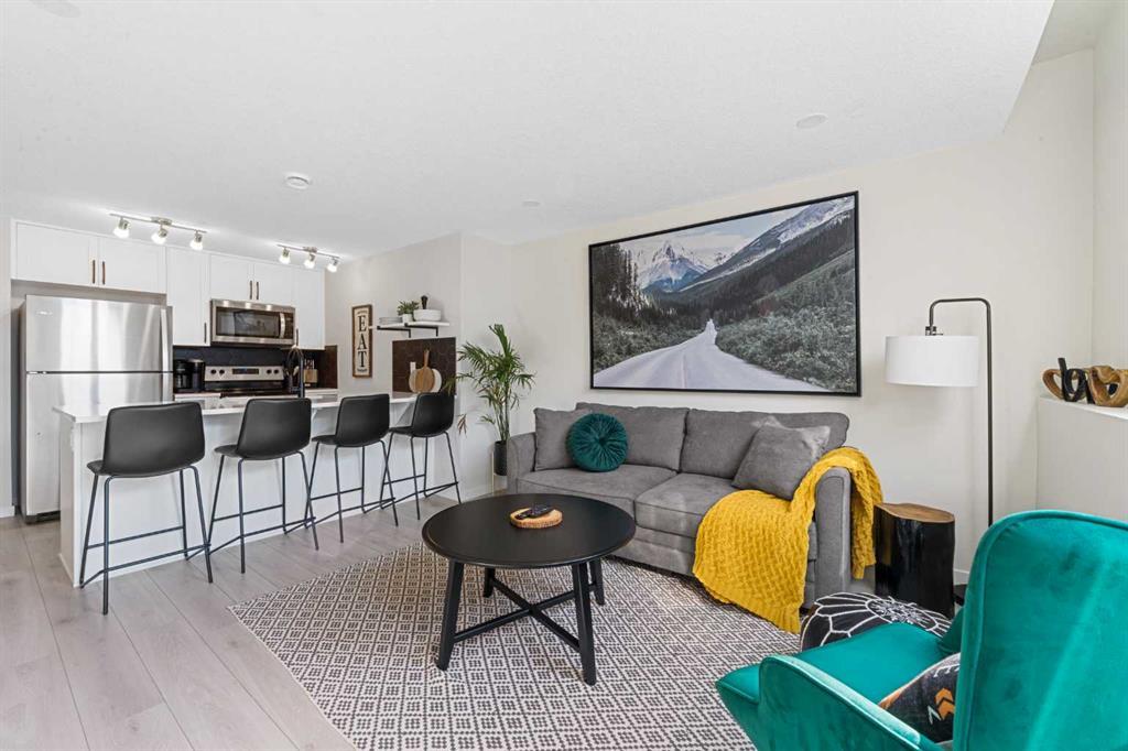 Relax and make yourself at home in this single-level garden townhouse featuring a modern and stylish design with high-quality finishes throughout. Located in Cranston Riverstone, the condo is surrounded by natural beauty, including the Bow River, Fish Creek Park and numerous walking and biking trails. The South Health Campus and all amenities (pubs, restaurants, Movie Theatre and YMCA) are just a short drive in nearby Seton. A welcoming patio leads to the private entrance into the unit. Being an end unit, you'll appreciate the extra square footage compared to interior units in the complex with similar floor plans. The rooms are wider and much more spacious. The gourmet kitchen features a stainless appliance package, quartz counters, upgraded shaker-style cabinets and black hexagon tiled backslash. The kitchen overlooks the sunny living room, making the space perfect for entertaining. At the rear of the home is the large bedroom with room for king sized bed, dual closets and space for a desk/workstation. The condo is complete with a full bathroom, in-suite laundry and extra storage in the utility room. Additional upgrades and features include knock-down ceilings throughout, a roughed-in water line behind the refrigerator, soft-shut cabinets/drawers in the kitchen and bathroom and matte black handles & hinges throughout the home. "Zen" Townhouse complexes, built by Avalon, are known for their high-quality, energy-efficient homes. The monthly condo fee for this unit is only $118 a month! The assigned parking stall is located right in front of the home. This complex is short-term rental friendly (with a City of Calgary Licence) and this unit has operated successfully as a top-rated AirBnB rental. Would also be an excellent investment and home for a first-time buyer!