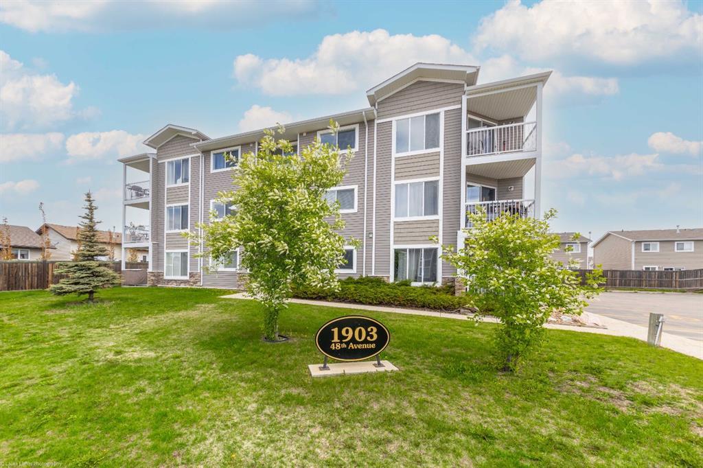 Discover the perfect blend of comfort and convenience in this main floor corner unit located in a well-maintained Sask building. Enjoy easy access to parks, the Servus Sports Center, gyms, and a variety of restaurants. This immaculate two-bedroom condo features new laminate flooring and countertops, enhancing its modern, open-concept design. Highlights include in-suite laundry with ample storage, two parking stalls, a newer central A/C unit, and comprehensive monthly condo fees covering water, sewer, garbage removal, lawn care, common area maintenance, and exterior building upkeep. Ideal for those seeking a stylish, low maintenance and well-appointed home with easy access to local amenities.