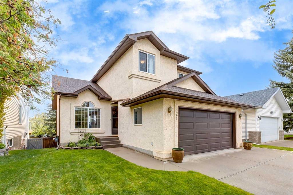 Welcome to this beautifully updated home in the established and well sought after community of Hidden Valley. This 2-storey walkout home has over 2400 sq ft of developed living space. The main floor entrance greets you with open ceilings and laminate flooring throughout. The open concept area has a casual/modern family room with a feature fireplace/TV wall with stacked stone and a wood mantle. This room is open to a stunning updated kitchen with gorgeous cabinetry, white appliances, laminate countertops and a large movable island. Adjacent to the kitchen is a separate dining room perfect for a quiet family dinner. Also on the main floor is a half bath and a laundry area. The patio doors off the family room lead to a East facing raised deck, below the yard is backing on to a green space. The upper floor has 3 generous sized bedrooms, including a spacious master bedroom. There is a full 5 pc bathroom as well as a stunning 4-pc ensuite with a tub/shower and private walk in closet. The lower level walkout is fully developed with a large family room, craft/spare room and a 3 piece bathroom. The basement has also been roughed in for a summer kitchen. It has patio doors leading to a very spacious backyard and the lower patio. 220v wiring has been roughed in for a hot tub in the back yard. The house sits on a walk out lot with a double attached garage and an extra wide driveway! Close to Shopping Centers, as well as lots of great schools, parks and walkways in the areas. Call your favorite agent to book your showing today.
