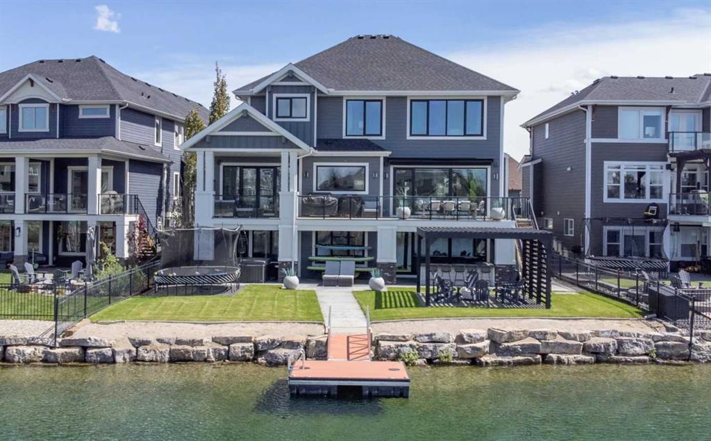 Location, Location, Location! Nestled on the most sought-after street in Auburn Bay, this lakefront estate epitomizes luxurious indoor and outdoor living. With well over 5,000 sqft of perfectly developed space, every room offers breathtaking views. Kick off your shoes and step into an open-concept main floor that will make your heart race. The spacious living room with a modern fireplace flows into a massive custom kitchen designed for a culinary master chef. With double islands and a butler's pantry featuring a beverage fridge, this kitchen is a dream come true. The main floor also includes a dining room, a cozy office, and a spacious mudroom leading to the garage (we’ll get back to that surprise later!). Step out through the sliding doors to a massive deck where you can exhale your worries away while overlooking the serene lake. Ascend the custom staircase with glass railings to enter what might be the most amazing primary bedroom you've ever seen. This expansive room stretches from one side of the house to the other, perfectly transitioning from sleeping to soaking to getting ready for a night out. With that kind of view of the lake, it's impossible to wake up on the wrong side of the bed! Leaving the primary bedroom (we know it’s tough), you'll find a comfortable bonus room begging for a family movie night with popcorn. The stylish oversized laundry room might even convince teenagers to bring in their laundry. The upper floor is completed with two chic bedrooms, both with en-suites and walk-in closets. Now, let’s head downstairs! The walkout lower level is a paradise for all ages, featuring an open family/rec room for hanging out, a workout area or kids' mini sticks game space, a wet bar for entertaining, and a sizable bedroom with a cheater en-suite. Loaded with huge windows, the lower level is bathed in natural light. Slide on your flip-flops and let’s explore lake life! The west-facing backyard boasts a poured concrete patio with a hot tub on one side and an outdoor kitchen setup with the game playing on the TV on the other. Grab a cold one and head to the fire pit with friends while watching kids jumping off the dock and push each other off the paddle boards. Does it get any better than this? Oh, it sure does! We haven’t even seen the garage yet! Step inside and feel a wave of relaxation wash over you. This finished triple car garage features an epoxy floor, high-gloss cabinetry, and a TV for catching game highlights. Enjoy this space year-round with a garage heater keeping things cozy. THIS HOUSE IS AMAZING! I’m pretty sure when Kenny Chesney sings about sitting on a beach at the lake, he’s thinking about this place!