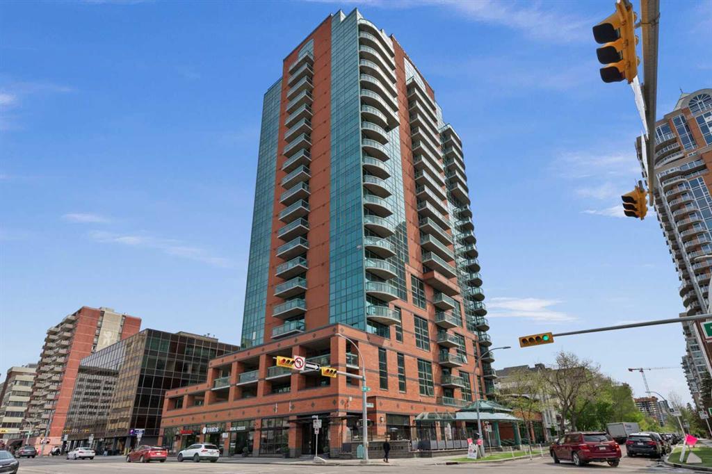 Fabulous 2 bedroom 2 bathroom 8th floor corner unit in the prestigious Emerald Stone building located in the heart of the Beltline district, one block off vibrant 17th Avenue. Offering over 900sqft of living space with 9ft ceilings, impressive floor to ceiling wraparound windows in the main living area, crisp white paint, low maintenance slate tile flooring, and granite on all kitchen/bath surfaces. The generous kitchen is a focal point with beautiful cabinetry to the ceiling, granite countertops, a large island with breakfast bar, custom pantry with pull-out drawers and Miele/Kitchenaid stainless steel appliances. Thoughtfully designed with two bedrooms located at opposite sides of the unit – perfect for privacy, room-mates or visiting guests. Spacious primary bedroom with ample room for king sized furniture, his and her closets and full ensuite bath. Second well-sized bedroom and additional full guest bathroom. Convenient in-suite laundry. Incredible storage space in this unit with large closets in both bedrooms, and oversized closet at front entry. Balcony with gas line, titled parking stall in underground parkade with extra storage locker behind parking. Central air conditioning. Freshly painted in last two years. Emerald Stone is a well managed building offering weekday concierge service, a well-equipped fitness room (newly renovated in the past two years) and a stylish party room with pool table. An ideal location directly across the street from Save On Foods and Canadian Tire, a short walk to downtown, and surrounded by restaurants, shopping, and entertainment.
