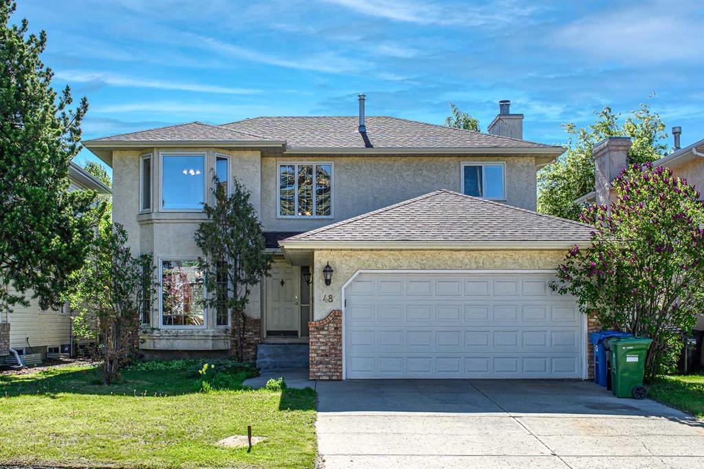 Open house: Saturday 1-3pm June 15 2024. Welcome to this beautifully updated, well maintained and perfectly located in the community of hawkwood ! On a quiet no-through street, this home has it all and awaits your family. The functional floorplan offers 17 ft ceiling entranceway, large living/dining room and spacious kitchen. Oak flooring throughout the main and upper level, large family room with gas fireplace off kitchen & den/bedroom & laundry complete the main level. Upstairs boasts the large master bedroom with walk-in closet, 4 pc ensuite and another two additional bedrooms & main baths. Basement is fully developed with a good size family room, wine room and a full bathroom. Sunny backyard is remarkably landscaped featuring a large deck with gas hookup and mature apple and cherry trees. Tons of storage space, newer windows, furnace replaced on 2020, roof replaced on 2014. This home shows pride of ownership, walking distance to elementary schools, transportation & 5 min drive to grocery stores & amenities. Show today before it is gone!