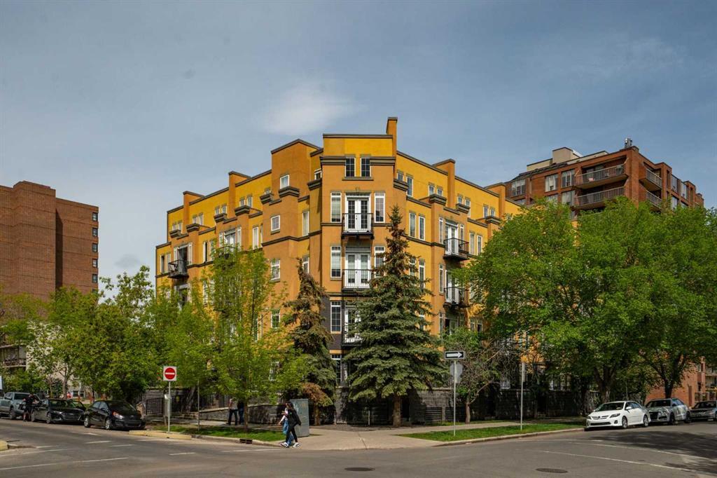 Discover the charm of this south and west-facing corner unit in the well-maintained Paradyme complex. Bathed in natural light, thanks to its expansive windows, this bright corner unit offers a welcoming ambiance, and beautiful views of the Grace Presbyterian Church across the street. The updated kitchen features a raised eating bar, stainless and black appliances, and plenty of cabinet space. Enjoy 2 bedrooms including the primary with a large walk-in closet and convenient access to the 4-pc bath. The second bedroom / flex room is ideal for an office or spare room. This unit also boasts newer luxury vinyl flooring, 9-foot ceilings and garden doors which gives it a french flair. Convenient in-suite laundry and a titled underground parking space, ensuring practicality and ease of living. Located just steps away from the vibrant 17th Avenue, you'll enjoy quick access to trendy shops, restaurants, and the bustling downtown area, making it perfect for those who value urban living. One of the standout features of the Paradyme complex is the stunning rooftop patio, offering a perfect setting for relaxing and enjoying warm summer evenings. Whether you’re looking to entertain or simply unwind, this outdoor space provides a serene escape. With its prime location, thoughtful layout, and array of amenities, this corner unit offers a perfect blend of comfort and convenience, making it an ideal choice for urban dwellers.