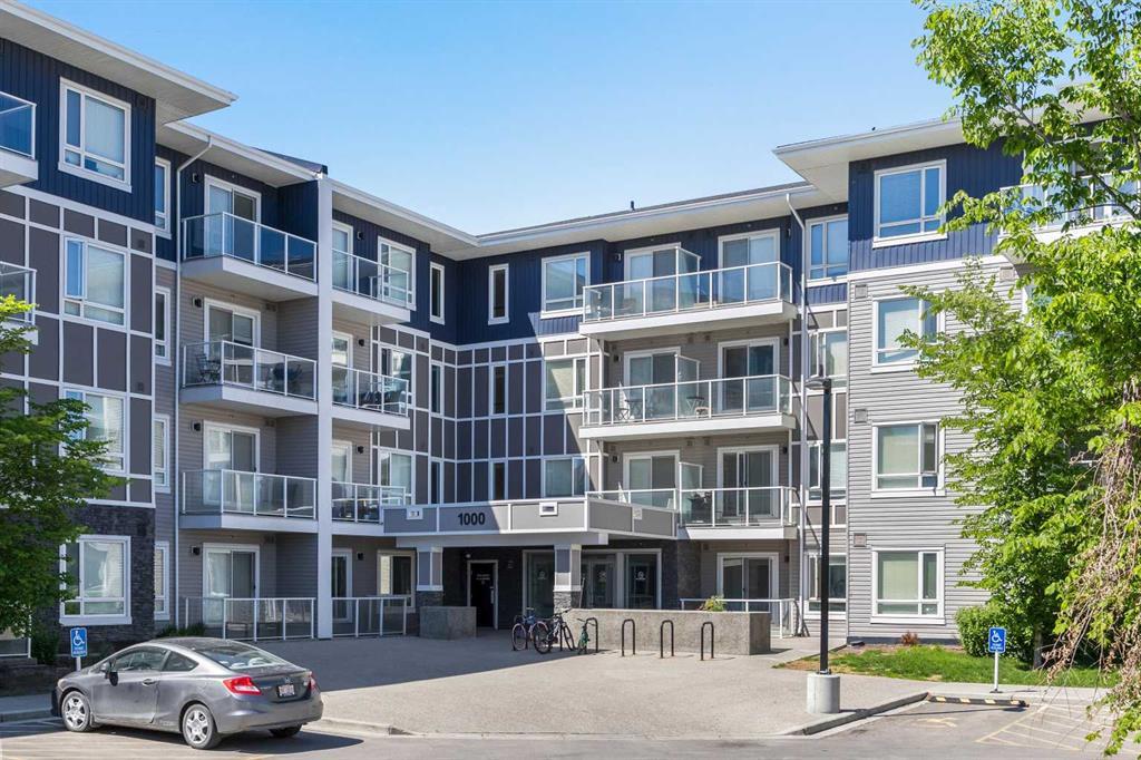 BACK ON MARKET DUE TO FINANCING - OPPORTUNITY AWAITS! Welcome to this AFFORDABLE apartment with LOW CONDO FEES, TITLED parking & TITLED storage in the Legends of Cornerstone condo complex, arguably one of NE Calgary's most sought after apartment buildings with a great location that is nestled along 128th Ave providing easy access to Metis Trail, Stoney Trail, Costco, a future LRT/train station nearby, schools and CrossIron Mills Shopping Centre. This 1 bedroom/ 1 bathroom unit features modern vinyl plank flooring, in suite laundry, tons of natural sunlight, quartz countertops and a modern kitchen with a sleek subway tile backsplash. THIS COMPLEX HAS TONS OF AMENITIES! Including a Fitness Centre, Yoga Room, Spin Room, a Dog Spa, Theatre Room, Kids Playroom, Party Event Room, Community Garden, BBQ access, Gaming Room and is PET FRIENDLY (upon board approval). This is a well maintained complex in a great location that does not have many units come up for sale, especially at this price point!