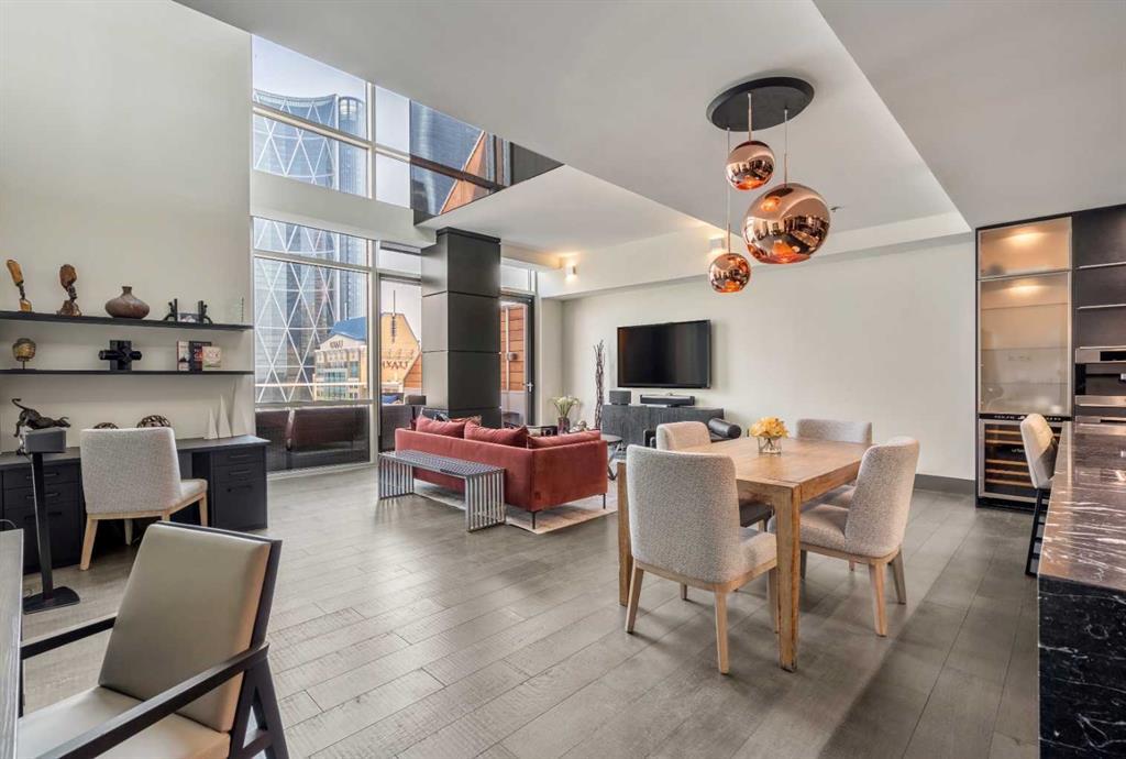 With a twist of the handle you can open the door to a life of modern magnificence + effortless exclusivity. Say hello to the Penthouse at Le Germain - one of the most coveted addresses in the city. Nestled at the foot of the Calgary Tower in the downtown core, the location is truly second to none. Indulge your senses and step out to the expansive outdoor terrace, chinook breeze blowing, the dazzling illuminated skyline staring back - you are on top of the world. Inside you will discover a two level layout, flooded with natural light via the large windows on both sides. Stand in awe at the 21 foot vaulted ceilings extending above the main floor living area. A space designed for entertainers and a distinguished kitchen for the dramatics. Quartz counters, integrated Miele appliances, gas range, custom cabinets, cappuccino maker + wine fridge. Let's head upstairs to the picturesque wall of windows looking out to the Calgary tower and secondary living area - an amazing additional space to cater to whatever your lifestyle demands. Retreat to the outstanding primary bedroom + magazine worthy ensuite bathroom. Soaker tub, walk-in shower, dual sinks, storage cabinets + fully tiled fashion runway like hallway that leads to the walk-in closet. The second bedroom enjoys those magical city views and the third room consists of a space saving murphy bed and built-in desk. The upper floor full bathroom revels in the south views and just adds to the high-end experience for visiting guests. This very private + boutique complex offers onsite concierge services to simplify your daily routine. Enjoy access to Le Germain Hotel amenities including RnR Wellness Spa, fitness centre, valet parking, restaurant, room service, catering, conference rooms, housekeeping and dry cleaning. Additional perks include two underground parking stalls, secure storage area, car wash, pet shower + bike room. World renowned architectural firm Lemay Michaud joined forces with Groupe Germain to create this gorgeous landmark. A life of style, sophistication + spectacular opulence; this is your chance to call it home. Click to watch the full lifestyle tour video on YouTube!
