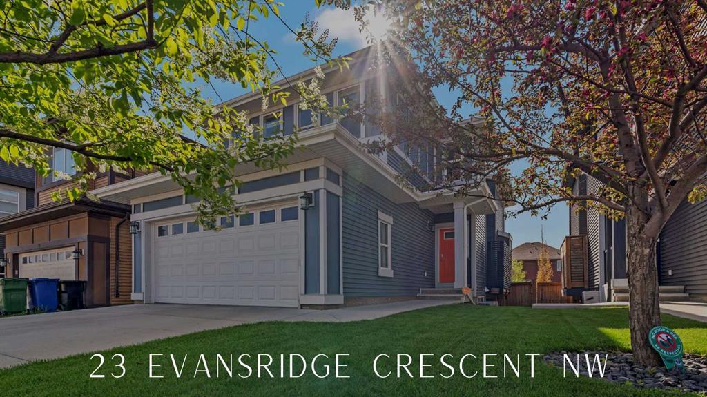 STEPS TO OUR LADY OF GRACE SCHOOL + PLAYGROUND | WEST BACKYARD | FULLY DEVELOPED BASEMENT | IDEAL FAMILY LAYOUT | Welcome home to 23 Evansridge Crescent NW in the wonderful family community of Evanston. The main level features hardwood flooring throughout, large west-facing windows letting in an abundance of natural light, and a perfect family layout with a cozy living area centred around a gas fireplace. The upgraded kitchen includes stainless steel appliances, a gas range, a built-in wall oven, quartz countertops, and beautiful full-height cabinets. This level also has a 2pc powder room, a spacious dining area, and access to the fully landscaped backyard, complete with a large deck and gas line, an ideal setting for summer BBQs. The upper level features a sizeable primary bedroom with a fully upgraded ensuite, double vanity, stand-up shower, separate soaker tub, and a large walk-in closet. Additionally, you will find two more ample-sized bedrooms, a sizable bonus room, an additional 4-pc bathroom, and a large laundry room. The fully developed basement could be a teenager's dream space, complete with a large rec room, a 4-piece bathroom, a large fourth bedroom and ample storage throughout. This family home is close to shopping, schools, parks, and pathways, has easy access to the new ring road, and is just 10 minutes from the airport. Don't miss out on this; please book your private showing today.