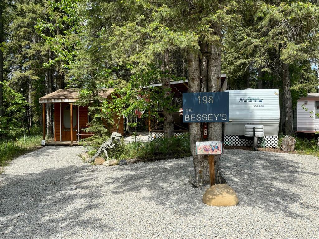 Looking for a tranquil spot to unwind? Look no further than lot 198 in Riverside RV park. With treed surroundings and proximity to the Red Deer River, this private and spacious location is the perfect recreation spot to drink a hot coffee and listen to the birds sing! Tucked back in a quiet corner of Riverside, this lot has all you can ask for. Walk up into this large lot, and enjoy this 2001 Wanderer trailer with a covered deck and OUTDOOR KITCHEN. Inside this well-kept trailer is open kitchen-dining seating with a pull-out couch and primary bedroom at the back. Additionally, there is the coziest BUNKIE for extra sleeping accommodations. Gaze up at the stars while cuddled up at the fire in the serene gazebo area. Riverside is a private RV park featuring a Clubhouse, coin laundry, walking paths, playground, horseshoe pits and MORE. Direct access to the river and walking distance to the amenities of town!