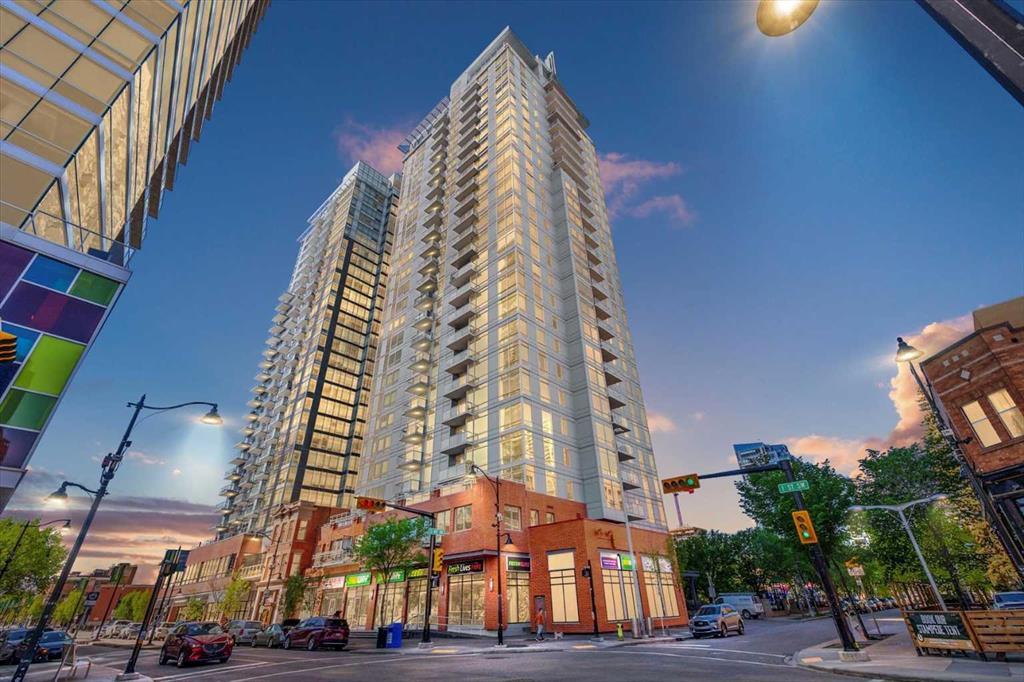 Looking for a 2 bedroom/2 bathroom updated condo in a great location? How about with an epic West view of the mountains and overlooking a park? Located in the midst of 1st Street SW, you will be steps from amazing restaurants like 10 Foot Henry, Calcutta Cricket Club, First Street Market and more! Natural light pours into this corner unit and compliments the light neutral palette with hardwood floors and an updated kitchen. Entering this home, you will note that it is one of the largest floor plans in the development. A convenient foyer with large entrance closet welcomes you, before you make your way into the open concept living area. The kitchen features granite counters, stainless steel appliances, chic backsplash, pantry and an eat up island. The built in nook beside the dining room can be space for a home office, or to set up a wicked coffee bar! The second bedroom has a convenient cheater ensuite; whether you plan to set this up as a home office, guest suite or to have a roommate. The second bathroom also hosts the laundry facilities with an oversized closet. The primary suite has an abundance of windows, a walk in closet and expansive ensuite with a enormous glass shower. The balcony will be a perfect spot to sip away your summer evenings, and this Scandinavian inspired condo is gorgeous. This home also provides underground titled parking, and an assigned storage locker. With a 98 Walk Score, you are in the midst of it all. 17th Ave, The Saddledome, Casinos, 12th Ave are all steps away, and the epitome of elevated downtown living is available and is ready for you. Call your trusted agent and get here to see it before She Gon'. With a limited inventory and a red hot condo market - time is of the essence.