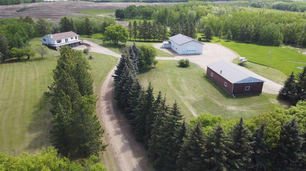 Gorgeous 11.56 acres near Red Deer Lake. This one has it all, 4 bedroom home, 2 large shops and enough land for horses, gardening etc. Pride of ownership is evident throughout this property. The mature trees and park like setting welcome you to this well kept acreage. This spacious 1467 sq. ft. hillside bungalow with 4 bedrooms is mostly original and can be stunning with your modern upgrades. The main floor has an open feel with the large living and dining area that open to the full length deck with views of the spectacular yard. The family kitchen area has abundant natural light, a pantry and ample cabinet space. A large primary bedroom with walk-in closet and 3 piece ensuite, 2 additional bedrooms and 4 piece bath are also on the main level. The ground level basement allows for large windows and light for the large recreation area with hot tub and the family room with wood burning fireplace. The lower level also has the 4th bedroom, 3 piece bath and a large laundry/storage area. The modern 40' x 60' shop with floor heat (boiler), metal lined interior walls, mezzanine, air exhaust system, full plumbing and washroom is ideal for a home based business or personal use for wood working, mechanical work, welding, RV parking etc.! The second shop is a 38' x 60' block building with end and side overhead doors.