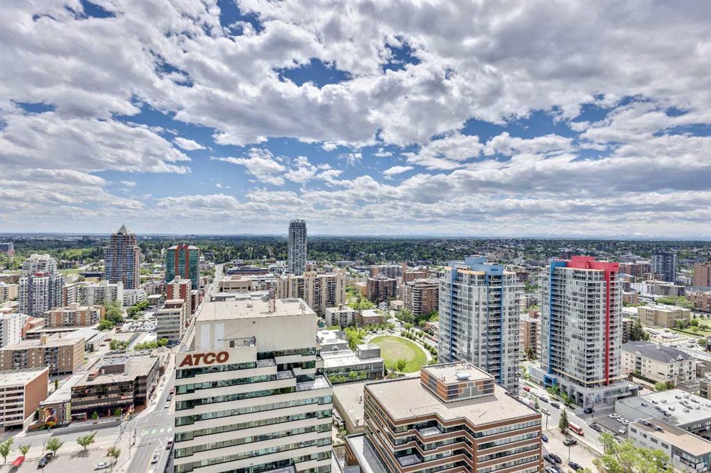 High up in the clouds in this 30TH FLOOR APARTMENT features STUNNING AND BREATHTAKING SOUTHERLY VIEWS OF CALGARY AND ROCKY MOUNTAINS from this TURNKEY FURNISHED chiq 1 bedroom modern home in the Beltline. Steps to innumerable restaurants and cafes in every direction and across the street from the downtown Safeway and walking distance to the free-fare C-train station. You will never need a car living in this amazing location. The unit features newer vinyl plank flooring (installed October 2022), built-in appliances, in-suite laundry, new cartridges in all plumbing fixtures, and a gas countertop stove for the gourmet chef. Did I mention the Amazing views from all windows and the balcony!! Top Floor Amenities in the building (Mark on 10th) include an outdoor hot tub and rooftop terrace, massive 2-floor owners lounge with games room and seating area. Other amenities include a gym, sauna, and steam room. There is guest suites and a open air courtyard on the third floor. Nearby ride-share, drive-share, private parking lots, street parking, and stall leasing options from other occupants exist.