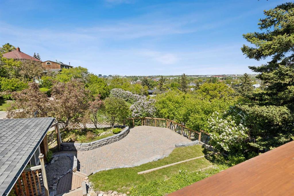 Discover Ramsay: Calgary’s Hottest Urban Neighborhood. This ONE OF A KIND property features over 2,115sqft of living space, and has been UPDATED and RENOVATED TO MODERN STANDARDS, all the while maintaining its mid century charm! In addition, it’s situated on an incredible 9,742sqft (.22 acre) lot with AMAZING VIEWS of the city! The multi-level TREED LOT is breathtaking with many patio areas, cobblestone paths, wooden pillar sided pathways and surrounded with trees, flowers and herbs. Situated on a QUIET STREET just steps from the OFF-LEASH DOG PARK/RIDGE, there is a gravel driveway for extra parking as well as ample parking (including a garage) in the back. The entry to this home features BRICK PILLARS and AGGREGATE STEPS to a front patio - an excellent place to relax. Enter into a grand foyer with FRENCH DOORS opening into an OPEN FLOOR PLAN with EXPANSIVE CITY VIEWS. The RENOVATED KITCHEN features a QUARTZ COUNTERTOP, UPGRADED STAINLESS-STEEL APPLIANCES, and a bay window with a million dollar view. This flows into a dining area accessing and overlooking a spectacular deck and backyard. The living room area is SPACIOUS and BRIGHT. The original HARDWOOD FLOORS have been recently re-stained and flow throughout most of the main floor. The master bedroom is quite grand, as it was originally two bedrooms (could be converted back to the original plan). A full, recently RENOVATED BATHROOM completes the main floor. The FULLY DEVELOPED lower level features a WALKOUT ENTRANCE with an illegal 3 bedroom basement suite! There is a common laundry room servicing both levels with a newer washer and dryer. There are 3 spacious bedrooms with NEW LUXURY VINYL PLANK flooring, a kitchenette and full bathroom with a DOUBLE VANITY! The large windows on this level provide an ABUNDANCE OF NATURAL LIGHT and views of the serene back yard! To complete this home, there is an OVERSIZED DOUBLE DETACHED GARAGE and extra parking at the rear. This home has had MANY RECENT RENOVATIONS including a NEWER KITCHEN, RENOVATED BATHROOM, NEWER WINDOWS, NEWER ROOF, HIGH-EFFICIENCY FURNACE and more! This is truly a spectacular property! Aside from a lovely home, there is great future development potential (or even add a 2nd level with a rooftop patio with downtown views). So much work has gone into the landscaping you feel like you are somewhere else entirely - it's like a retreat! Due to the huge lot size, future development opportunities are endless! This ONE OF A KIND PROPERTY is perfect for an outdoor enthusiast, anyone who loves to entertain, or a developer looking for a PRIME INNER CITY LOT. Ramsay is a dynamic and trendy community in Calgary, known for its rich history, artistic vibe, and proximity to downtown, making it a coveted neighbourhood for those seeking a vibrant urban lifestyle.