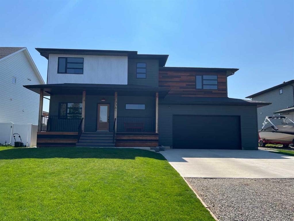 Come view this bright modern built home located in the fantastic Bridge Crossing sub-development of Raymond, just 25 minutes from Lethbridge. Great location; only a few blocks away to local schools and the Raymond public outdoor swimming pool. This 2139 square foot 2.5 storey with 3 bedrooms up and 2 down home is a must see! Main floor consists of a stunning custom built kitchen with stainless steel appliances, corner pantry for tons of storage, large island, and beautiful quartz counter tops. Enjoy the large living room with loads of windows to let in lots of natural light, cozy front office space, half bath and mudroom that leads to a large attached double garage. Upper level boasts a master suite with 4 piece ensuite and walk-in closet, 2 additional bedrooms , 4 piece main bath, upper level laundry room with storage shelves, and a huge bonus room for the kids to hangout. Basement is fully developed with a family room, 2 good sized bedrooms, and 4 piece bath. Enjoy the 66'x147' fully landscaped lot with fire pit, backing on the a wondrous large green space with no back neighbors. Tons of space to entertain family and friends. Do not miss out on the great opportunity! Call your favorite realtor today and book an appointment.